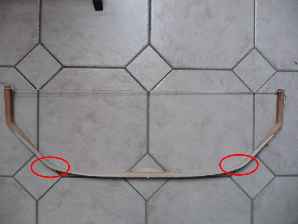 Die Verdrehung im unteren Wurfarm ist auch bereits im unaufgespannten Zustand gut sichtbar. Nur mit einer Kamera nur schlecht sichtbar zu machen.