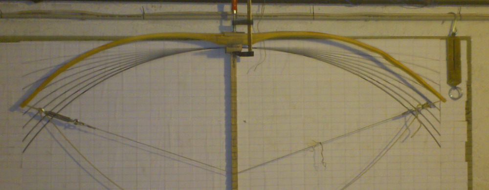 nun gings ein paar Stunden mit tillern dahin uns schließlich ist die Standhöhe erreicht. Dieser Bogen wäre ohne mein einhängbares Stahlseil mit den Wantenspannern in diesem Augenblick unweigerlich zerstört worden, beim langsamen Übergeben des Zugs auf das Stahlseil hab ich sofort gemerkt dass ein Wurfarm viel zu stark ist, dieses Ungleichgewicht wirkt sich bei so starkem Reflex auf Standhohe fatal aus, der stärkere Wurfarm streckt sich und wäre sicherlich umgeschlagen hätte ich nicht sofort wieder mehr Zug auf die lange Tillersehne gegeben.