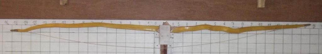 Eine vorläufige Zuggewichtsmessung ergab hochgerechnet einen Wert von etwa 55-60# @ 28"...