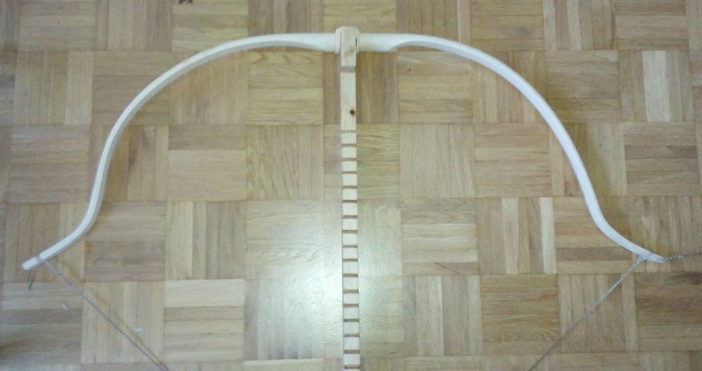 Die Erste Anleitung nach der ich mich gerichtet habe war auch ein asymmetrischer Bogen (zumindest leicht asymmetrisch), was es wohl nicht gerade einfacher gemacht hat. Nächstes Mal schön beide Wurfarme gleich lang.