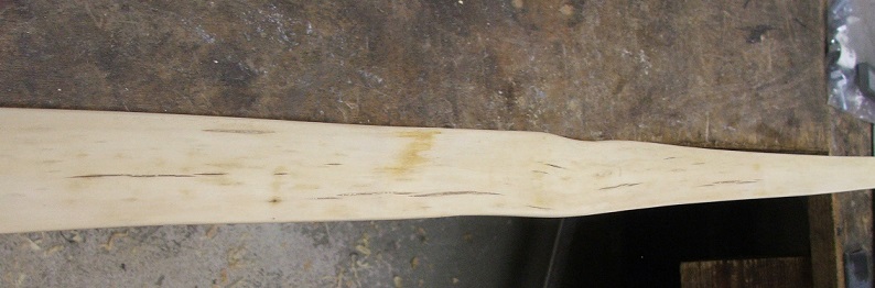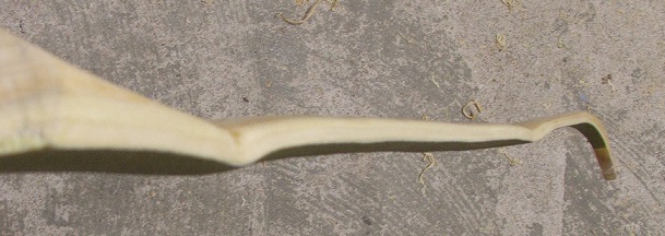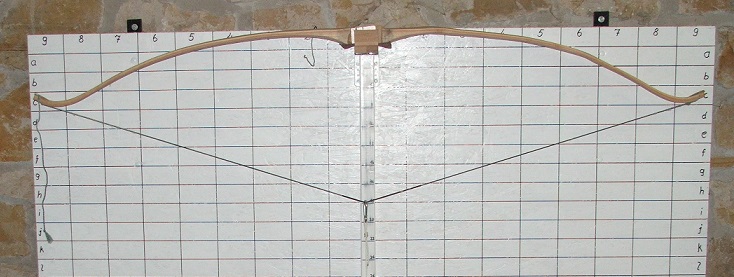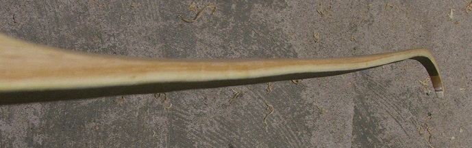 Habe heute wieder ein bisschen am Holz geschabt, und das auch auf 15 cm Standhöhe. Bin ganz zufrieden mit der Biegung und dem Zuggewicht von ca. 47# @ 27". Ich hoffe das er sich dann beim Einschiessen nicht mehr viel verändert und so 45 bis 47# auf 28" übrigbleiben. Der jetzt zum oberen WA erkorene ist der mit den zwei deflexen Wellen. Da nach der Welle am Fade ein ganz leichter Reflex bis fast zur nächsten Welle drin ist bleibt es aber beim etwas unrunden Aussehen, muß man sich halt anpassen