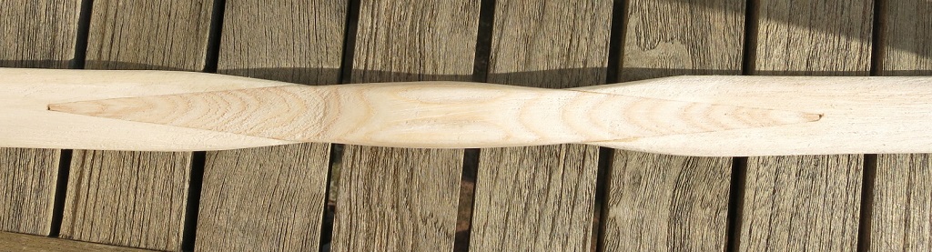Dadurch bekomme ich die schöne Form, bei der der Griff bei 0 cm 2,2 cm breit ist und 5 cm von der Mitte Richtung Wurfarm jeweils etwas schmäler nicht richtig hin. Im Foto auf der oberen Seite müsste der Griff bei 0 cm so schmal bleiben wie bei 5 cm von der Mitte. Auf der im Foto unteren Seite geht es.