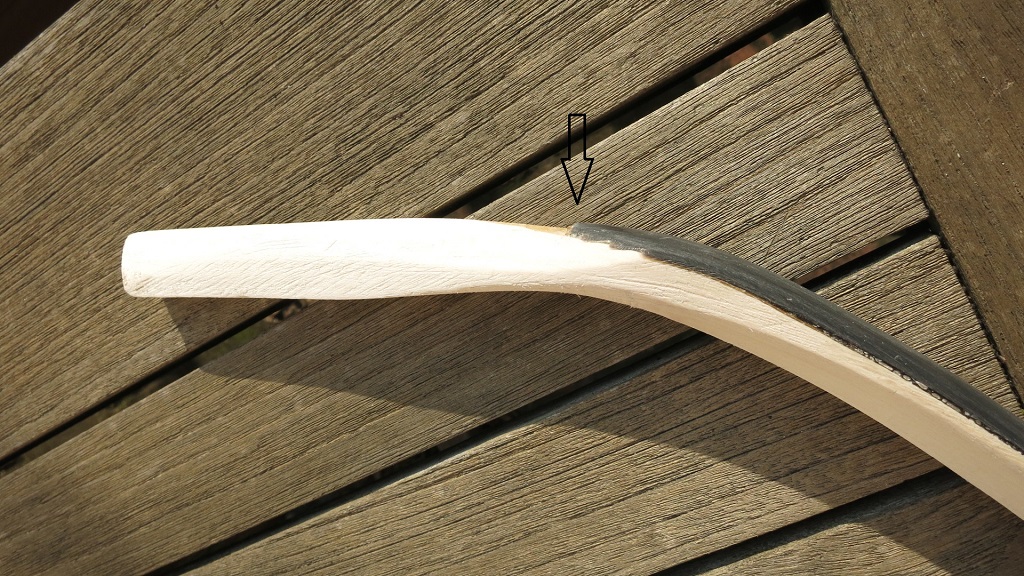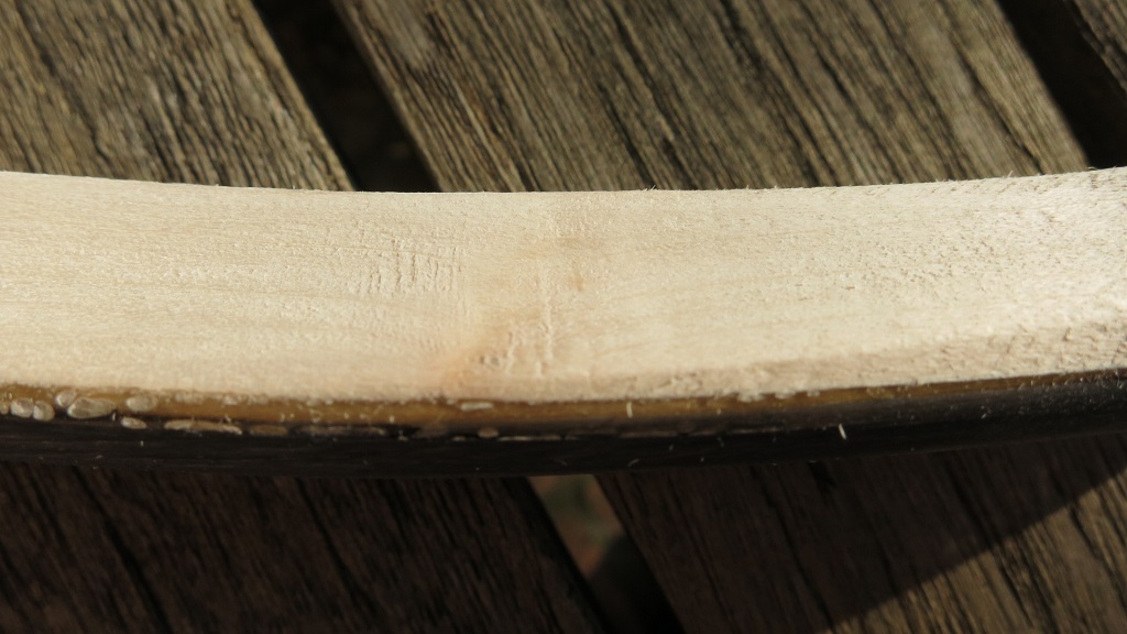 Von den Astlöchern finde ich das zweite auch bedenklicher. Der Übergang Kasan/Tip war bei mir auch ein Problem. Ich hab dann einen dünnen Streifen Holz auf die Rückenseite geklebt, was sehr fummelig war. Wieviel mm hast du da jetzt an Stärke und welches Zuggewicht strebst du an? Wenn du dort mit der Sehnenlage großzügiger bist kann das auch schon verstärkend wirken.