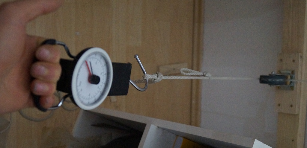 Ich denke, da du eine direkte Umlenkung an deinem Tillerbaum hast, wird der Wert nicht verfälscht. Bei einem Flaschenzug, der ja dafür gebaut wurde um schwere Lasten mit geringen Kraft zu siehen, sieht das Ganze etwas anders aus.