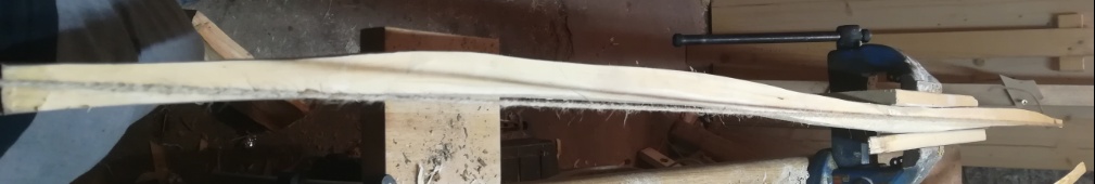 Er ist mir devinitiv noch zu dick und er hat Wasser in den Armen. Also Messer, Hobel und Feile geschnappt und erst mal ne radikal Diät verpasst. Die Wurfarme habe ich schon mal grob ausgearbeitet, da ich aber wenig Spielraum für Korrekturen habe. Momentan ist der Stave 180cm lang und soll später 30+#@ bei 29" haben. Möchte ich nicht kürzen. Muss es aber eventuell am geschlängelten Wurfarm aufgrund der Sehnenlage.