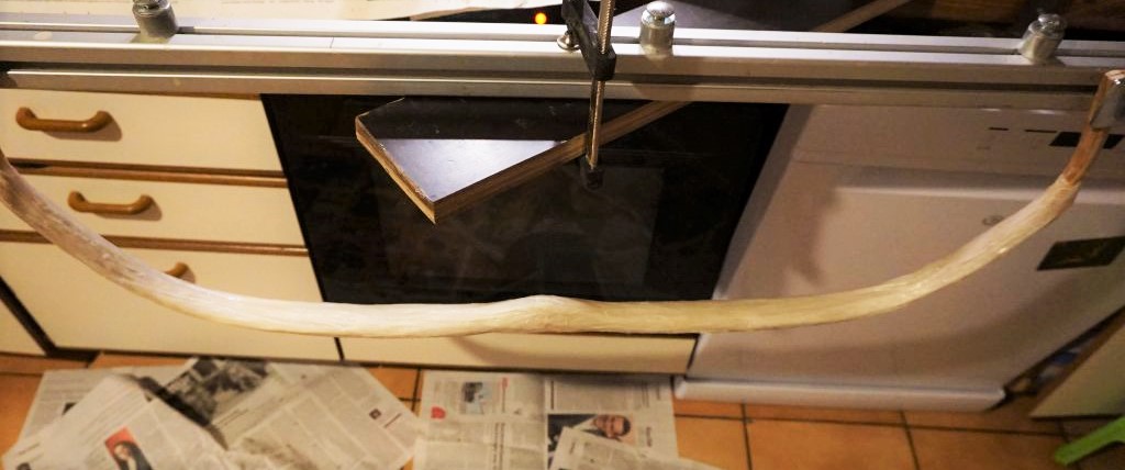 Da ich Urlaub habe kam ich gut mit den Sehnen voran. Sie sind nun soweit vorbereitet, sodass ich den Bogen bearbeiten kann. @ @Neumi Der Abfall wie du siehst, hält sich in Grenzen