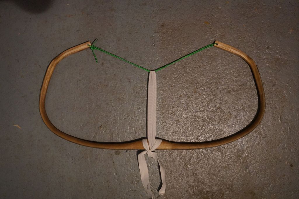 So heute wurde er entmumifiziert, gewogen, zusammengebunden und im Keller aufgehangen. Da darf er jetzt bis Februar trocken. Die Sehnenlagen sind wohl dick genug, sodass ich erstmal auf eine dritte Lage verzichten kann. Wenn ich mich täusche und die Sehnen doch mehr schrumpfen als gedacht, bekommt er noch eine drauf. Das aktuelle Gewicht stimmt zumindest.Der Bogen ist mit 238g ohne Sehnen gestartet und hat jetzt 388g. Ich denke er wird sein Gewicht noch bis 360g durch Wasserverlust reduzieren. Dann wären 120g Sehnen und Leim auf dem Bogen verbaut und das wäre genau 1 drittel des Bogengewichtes. Nun heißt es warten und hoffen das alles nach Plan verläuft.