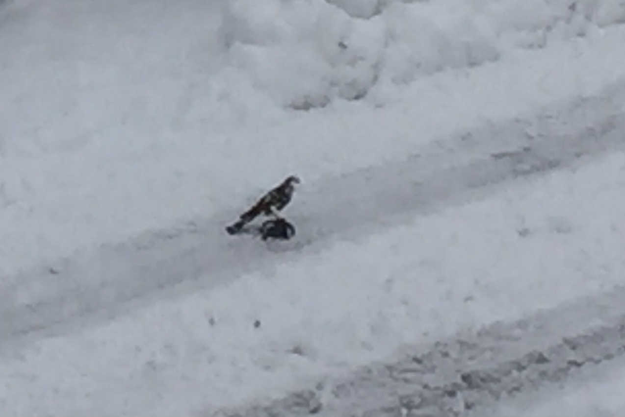 Bei uns gab es schon mal 2m Schnee, da gabs überhaupt keine Zäune mehr, beim Schnee abstechen vom Dach habe ich vor einigen Jahren einmal einen Falken beobachtet, wie er sich eine Amsel aus der Hecke geholt hat.