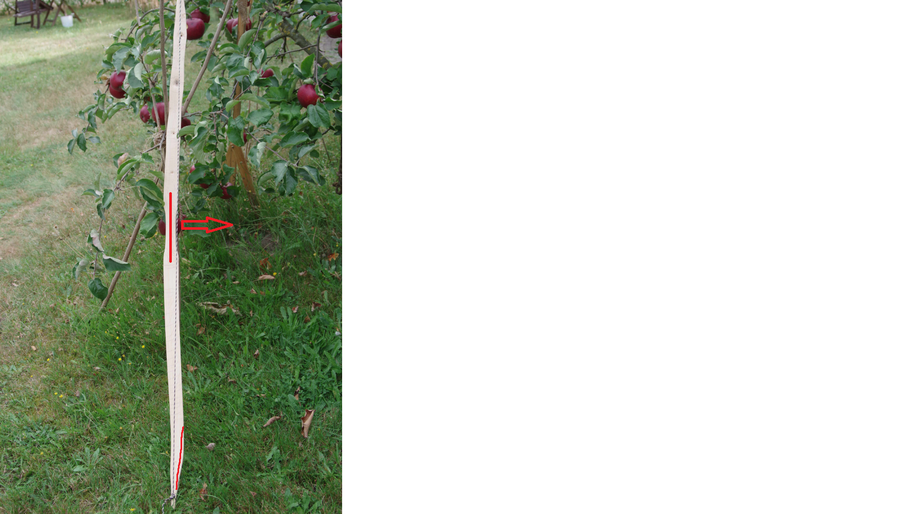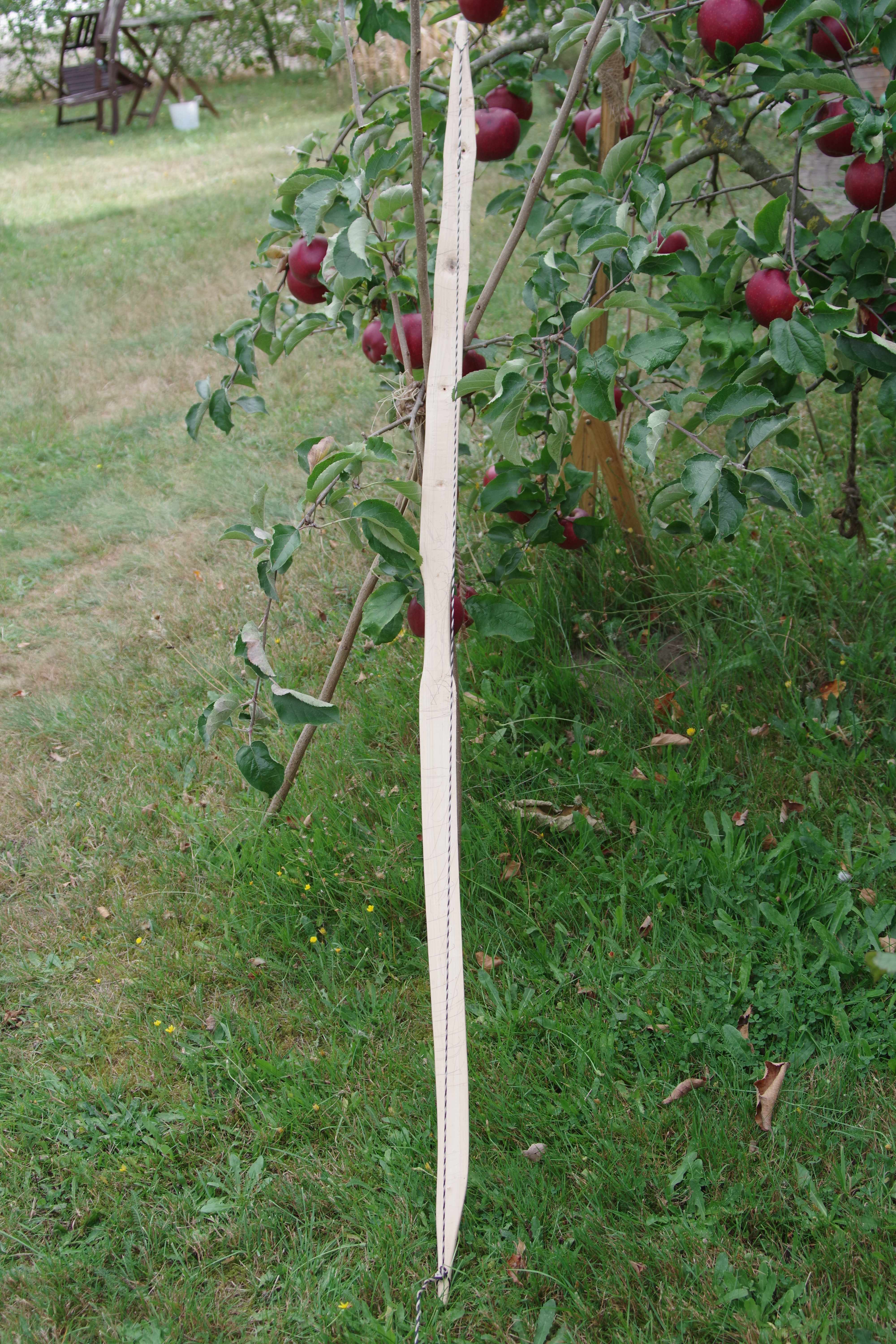 Die Sehne läuft deutlich neben dem Griff, und wenn ich den Bogen auszieh, verdreht er sich in meiner Hand bzw. steht schief auf der Auflage vom Tillerstock.