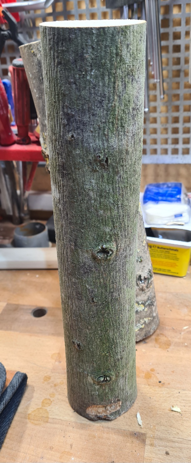 Den unbearbeiteten WA gedämpft. Insgesamt ist das Holz nachdem ich die Rinde entfernt habe noch zu nass.