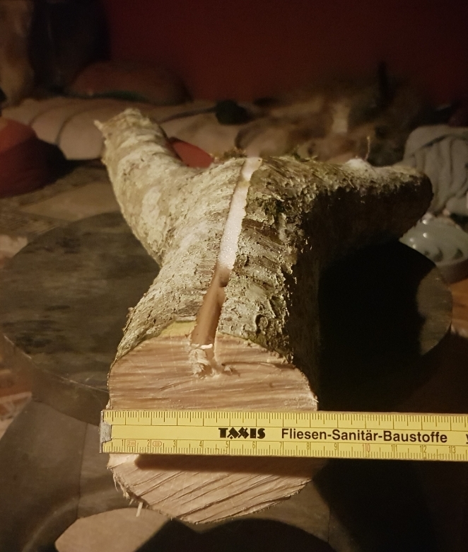 Und an der Birke habe ich auch gearbeitet... wenn das hält, dann ist die fast zu schön um Birkenrinde drüber zu kleben...