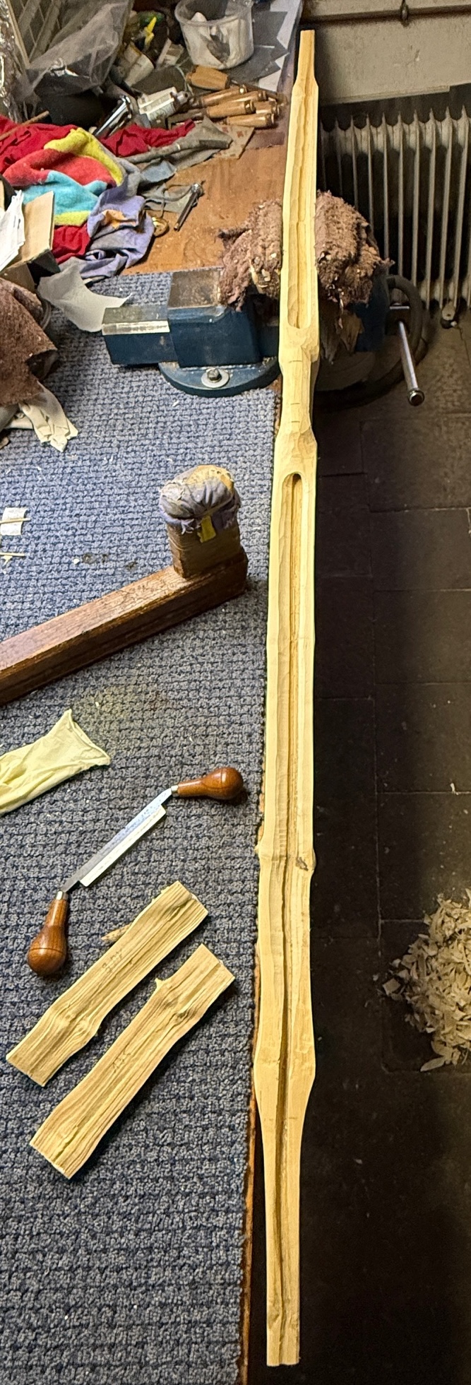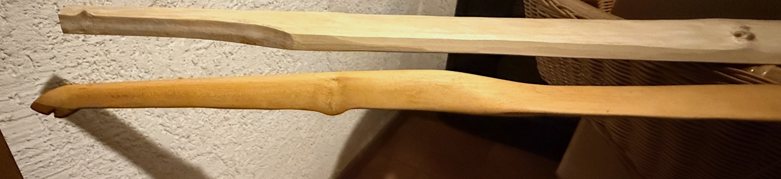 Ausserdem habe ich den Markkanal mit dem Rundeisen erweitert. Der Sapling hat einen so hohen Rücken, da werden mir die Wurfarme sonst zu schmal. Ich werde also Richtung HLD gehen. Ein HLD-Mölle also. Mal schauen. 1532g.