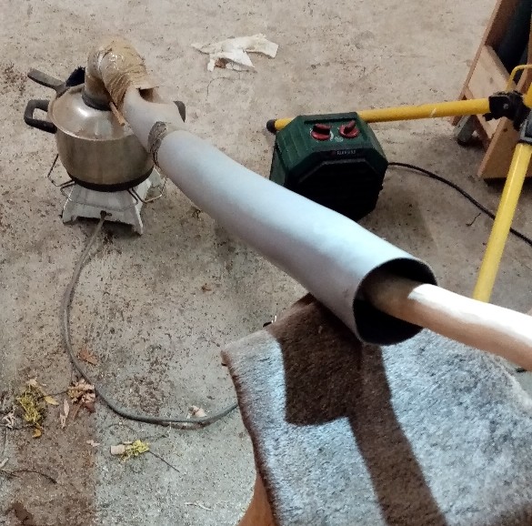 EFEU: Dann noch schnell ins Damprohr, und dann warten und Robinie: ziemlich gammelig unter der Rinde, ich habe jetzt überwiegend den Splint abgenommen und auf den ersten Kernring runterschrubbelt. alfredle