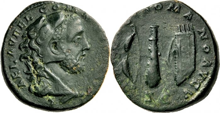 Die Münze zeigt, würde ich sagen, die "Insignien" des Herkules.