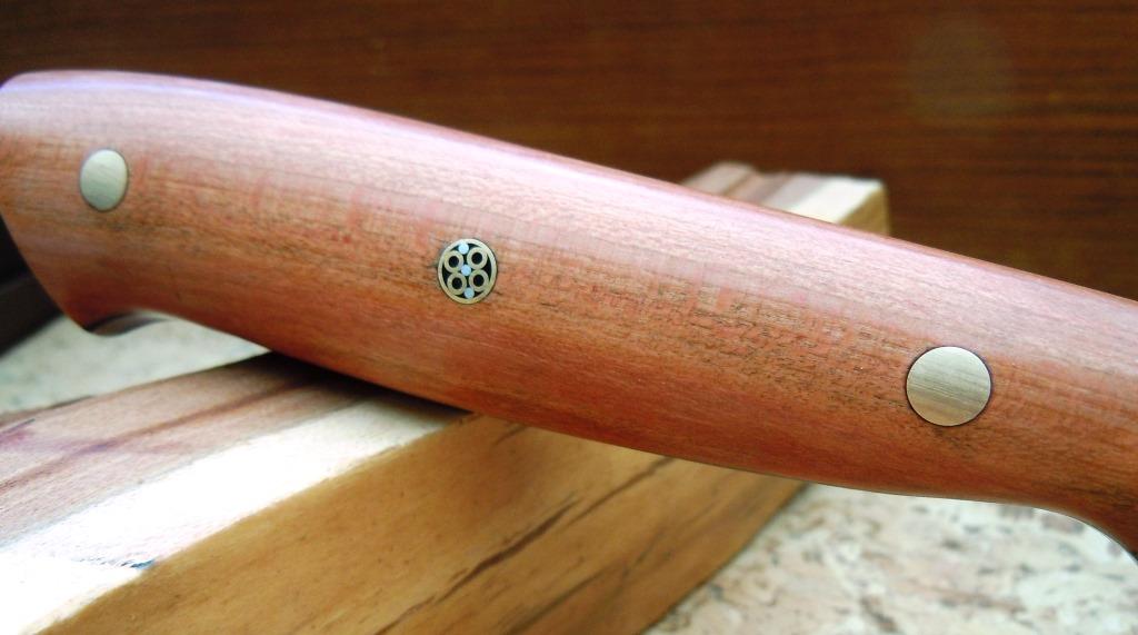 Griff: Wenge (Millettia laurentii), Edelstahl Nieten und ein Zierpin.