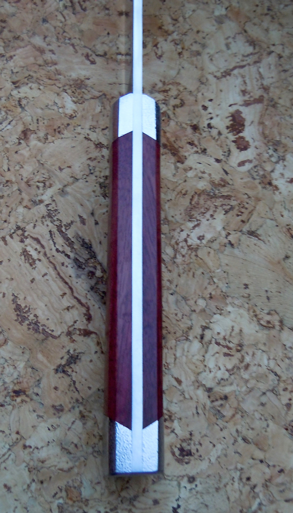 Das Griffholz habe ich von meinem Freund aus Brasilien: Roxinho (Peltogyone venosa, P. confertiflora, P. pniaculata) auch angeboten als Purpleheart oder Amaranth