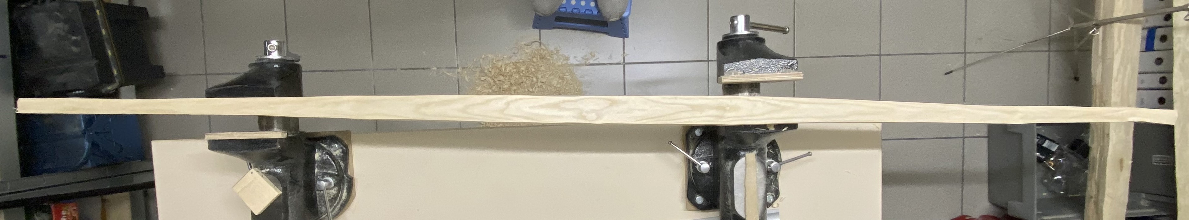Servus, die Linie an der WA Seite, 1cm parallel zum Rücken (Griffbereich ausgenommen) fehlt mir noch, von dieser Linie ausgehend raspelst du dann schräg zur WA Mitte den Grad, mit dem du dann tillerst und am Schluss ist der Querschnitt eher oval. Bei dir scheint die Dicke der WA an der Aussenkante noch mehr als 1 cm zu sein, daher biegt sich noch nichts.