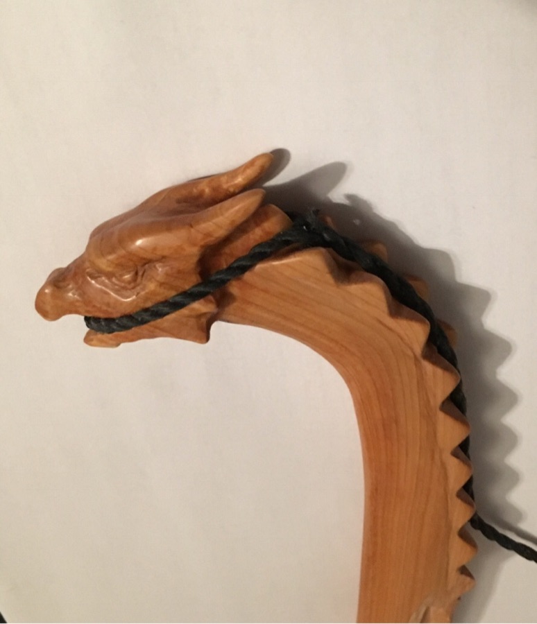 Eine Drachenkopf-Siyah für Robinie 2 ist soweit vorbereitet, dass ich sie einspleißen kann. Auf den Fotos ist Alles nur zusammengesteckt, muss also natürlich noch eineuliert und verschliffen werden. Das mach ich aber erst, wenn die zweite soweit fertig und das Horninlay im Maul eingepasst ist.