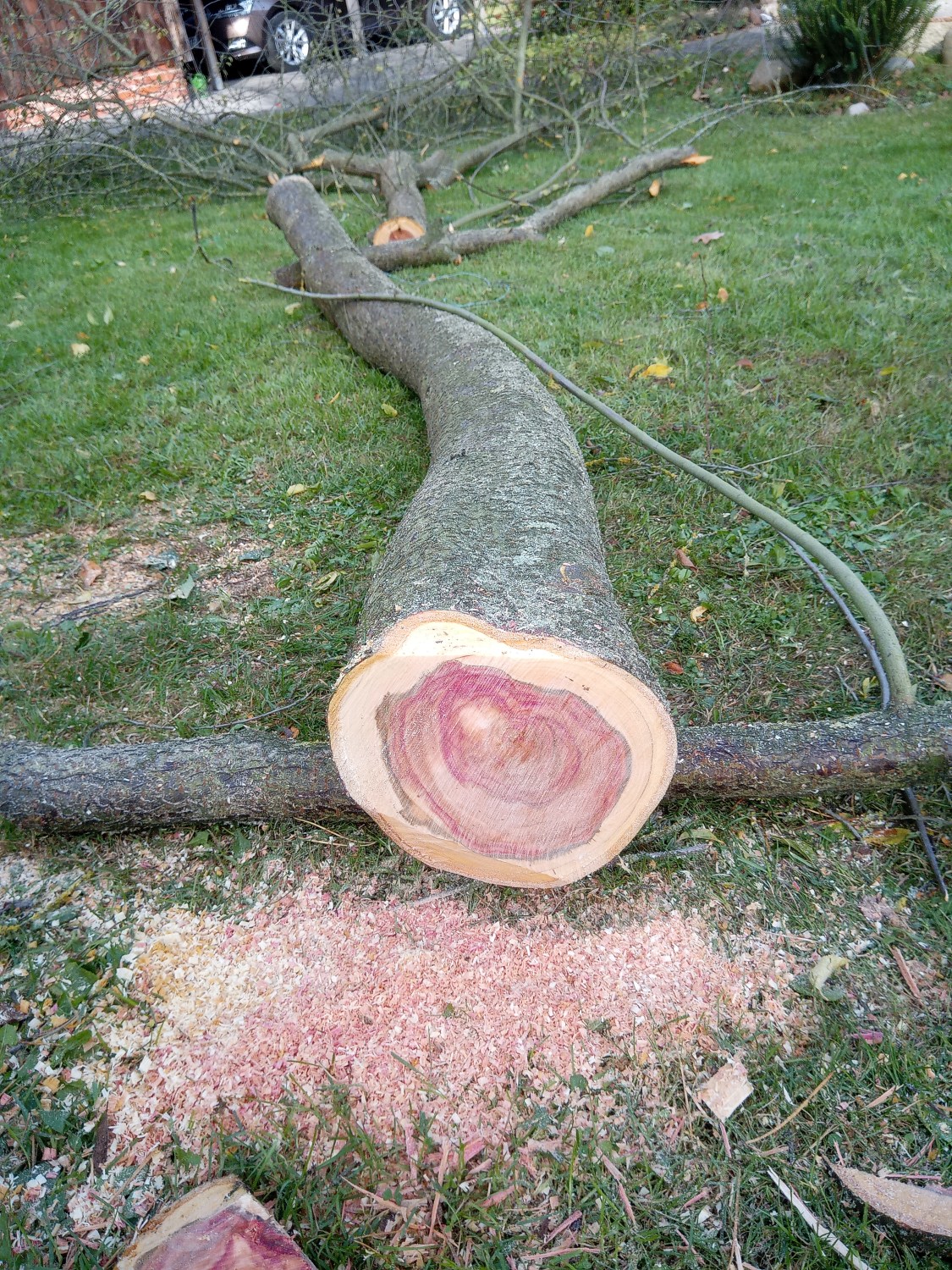 Also hab ich ausgeholfen und zum Dank den Stamm erhalten, ca. 25 cm Durchmesser.