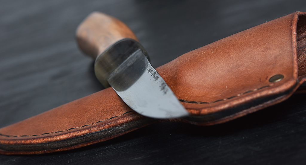 Griff (Apfelholz und Horn) und Lederscheide von mir.