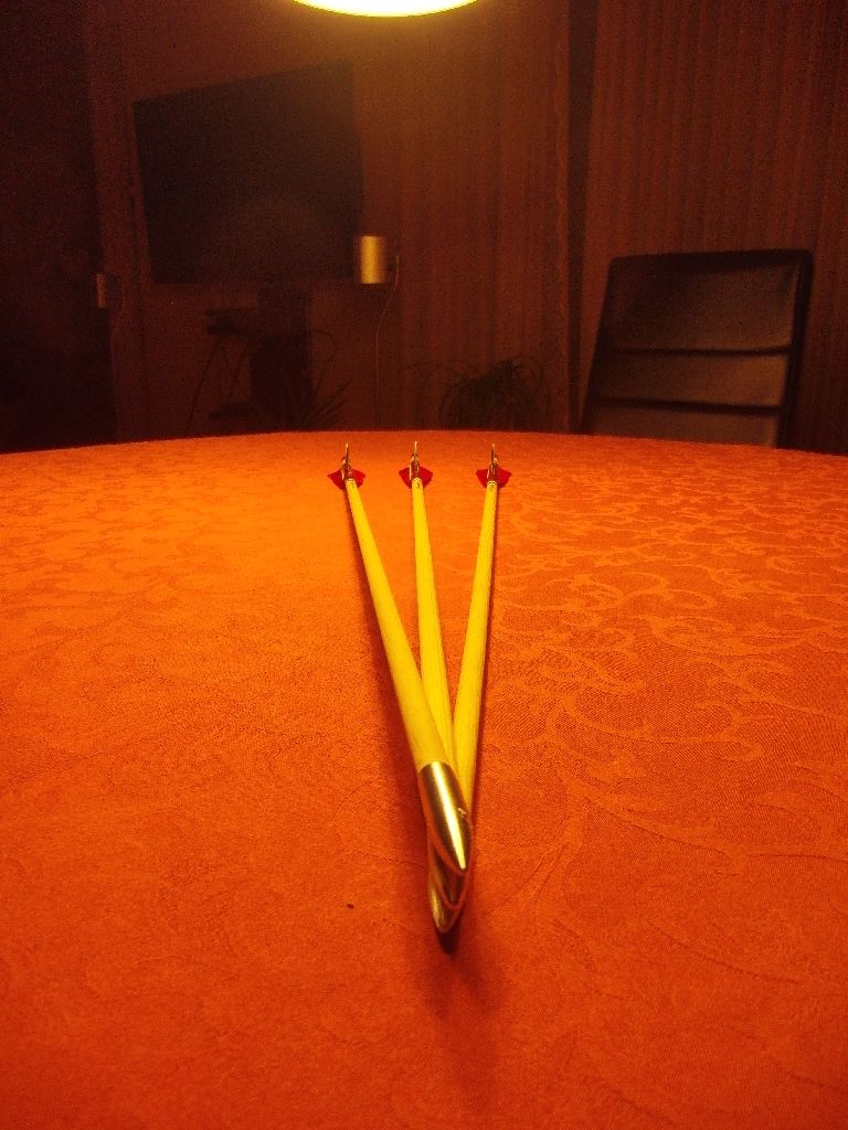 Allerdings habe ich in einem fünfwöchigen SPS1 (SchulPraktischeStudien1) an einer Schule mein Praktikantendasein gefristet (gefristet ist etwas negativ behaftet... es war echt cool ;) ) und als Dankeschön für meinen betreuenden Lehrer diese drei Kinderpfeile gebastelt, da er erwähnte, dass sein Jüngster auch mit dem Bogen schießt ;)