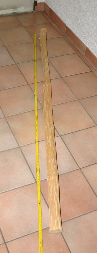 Der Stab hat 190 cm bei 35 zu 25 mm Durchmesser
