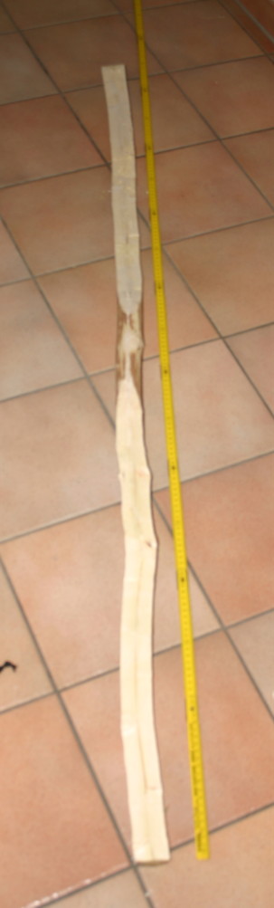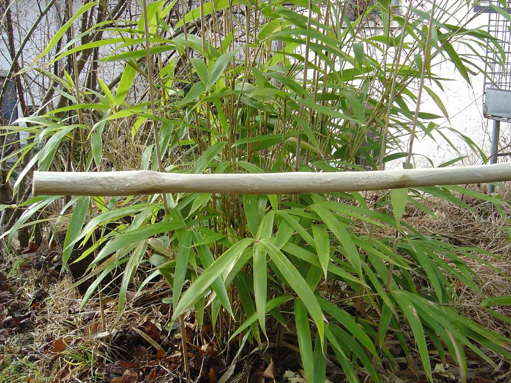 Um aber auf Nummer sicher zu gehen, war ich heute noch mal auf der Pirsch im Dämmerschein der Regentropfen und habe ruck-zuck einen sehr schönen Hasel abgeerntet (3,60 m lang 6 cm Durchmesser und schnurgerade)