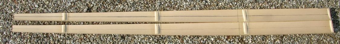 Zwei davon habe ich anschließend in der Mitte auseinandergesägt, damit ich zwei ein Meter Stücke habe die den gleichen Dickenverlauf haben.