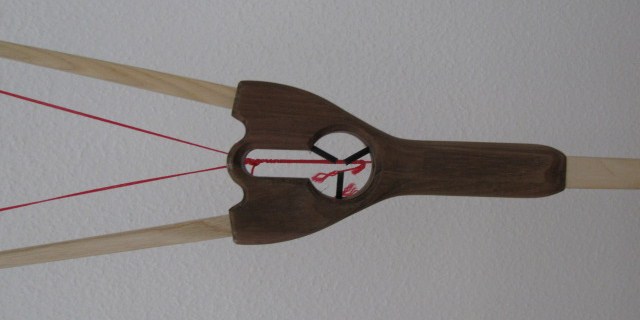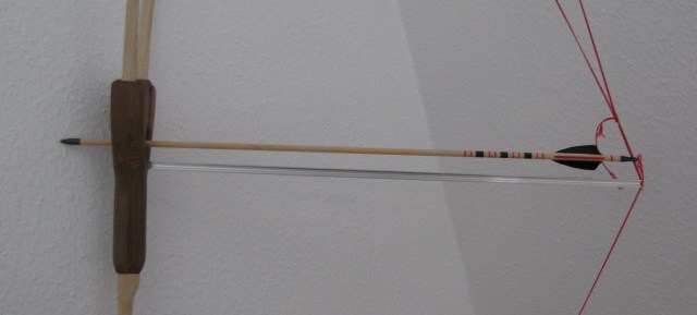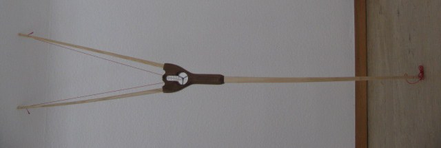meine idee bisher: wurfarme aus langlaufski, sehne zur zugkraftverstärkung, das ganze zum zerlegen mit ein paar schrauben dran - high tech trifft low tech