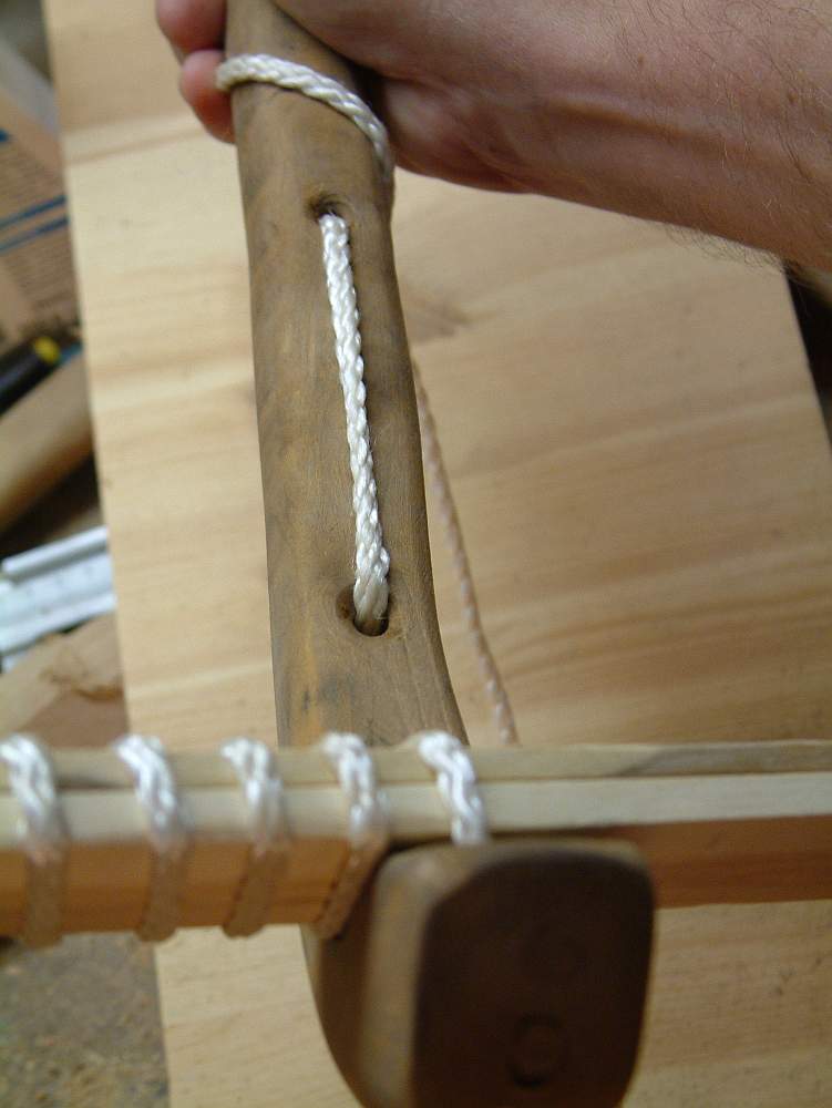 Die Laminate werden doch festgehalten, und man wickelt das Seil mit dem Tendschek drum herum, in dem man das Tendschek am langen Ende anfasst und dann um die Laminate herum dreht. Dabei wickelt sich das Seil um die Laminate.