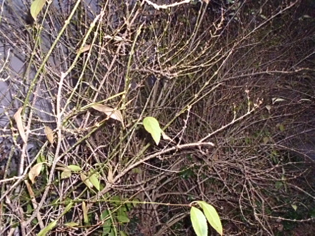 Mehrere Schneeballtriebe , Wildrose und einen Forsythie .