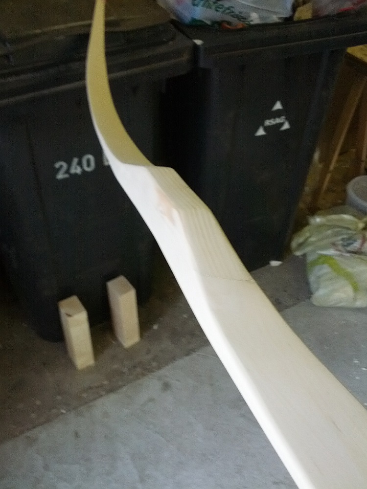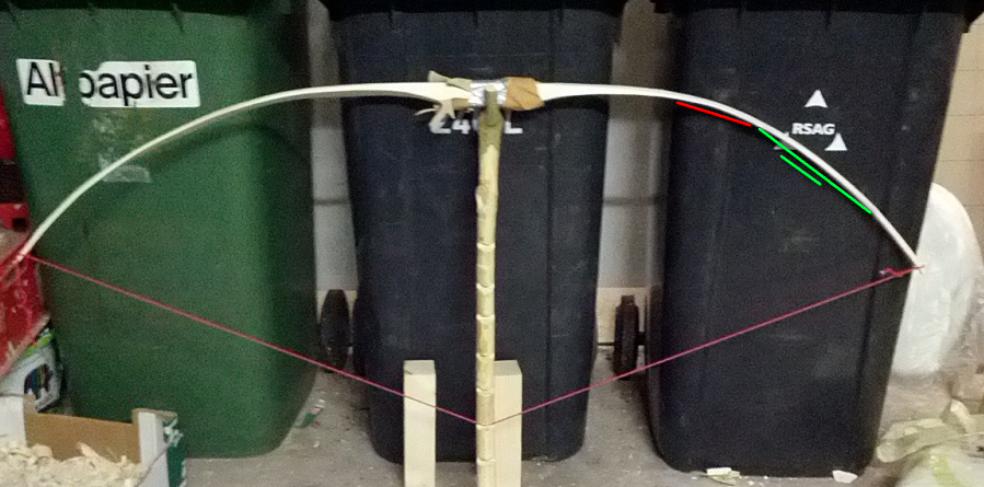 Ok der Bogen ist gekürzt und neu getillert. Rechts biegt er sich zu früh - aber was mach ich dagegen?