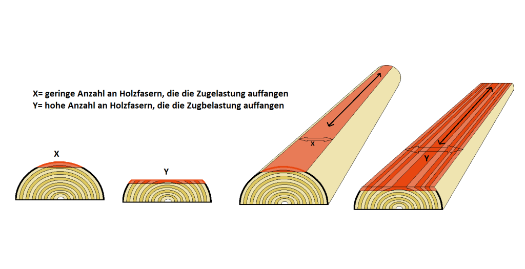 Je mehr Holzfasern die entstehenden Zugkräfte auffangen, desto weniger wird jede einzelne belastet.