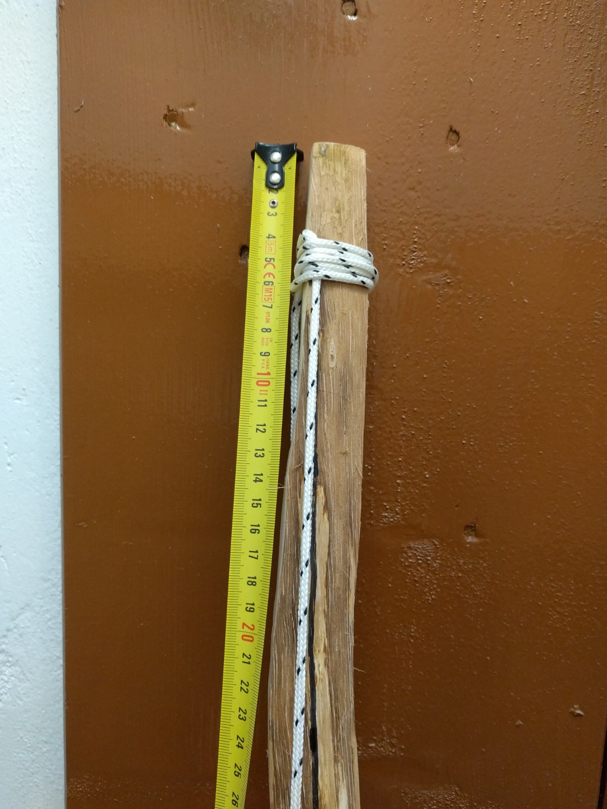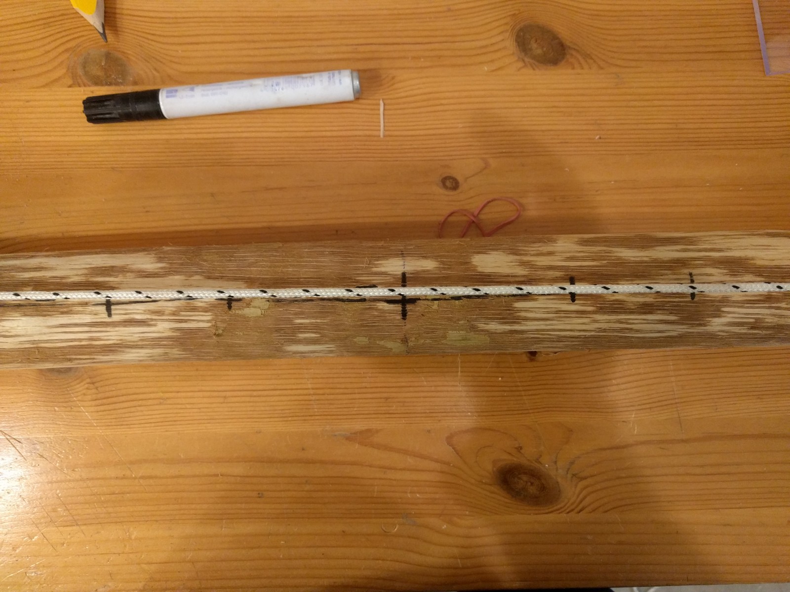 Ich habe mich nach der Anleitung in diesem Wikibook gerichtet und zuerst mit einer Schnur die Mitte am Griff markiert.