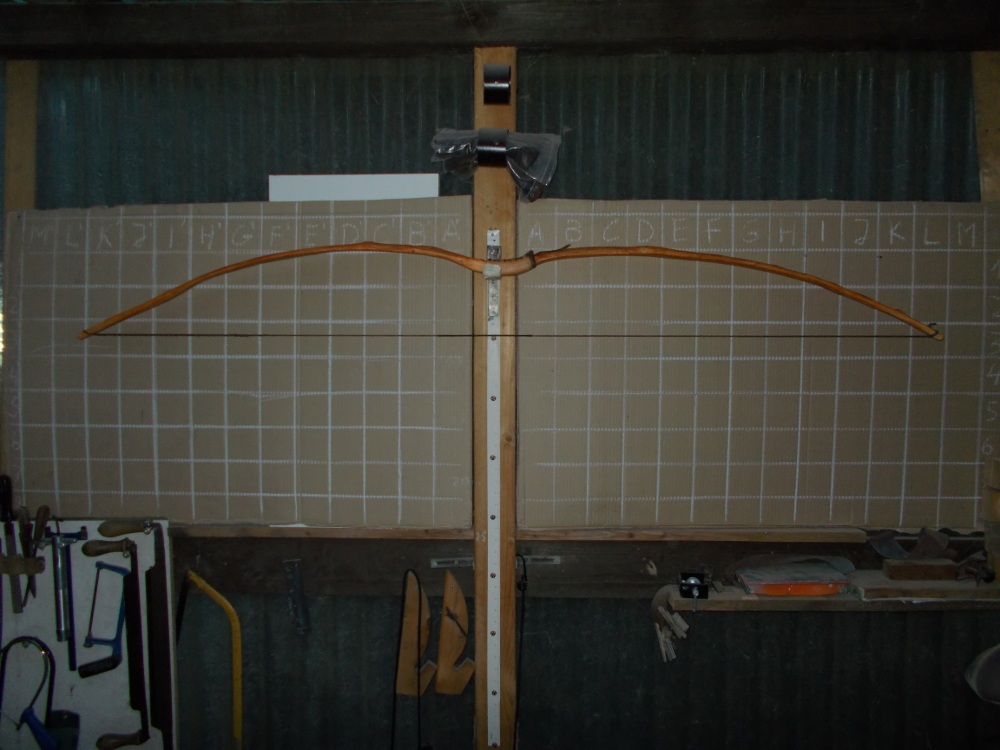 Bei der Wasserverlustmenge kann das Holz noch nicht ausreichend trocken sein, um zu tillern. Du handelst Dir unnötig viel Set ein, wenn Du jetzt schon anfängst zu tillern - ich würde den schönen Stave noch liegen lassen.