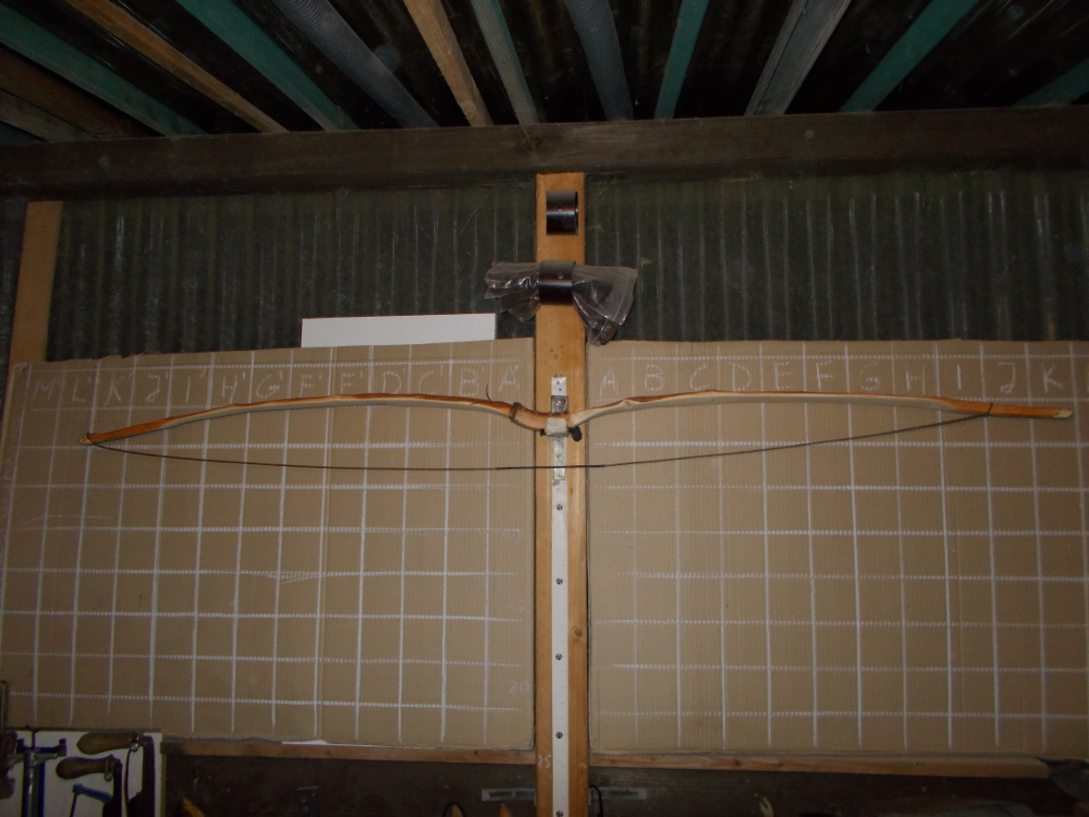 Heute Nocken reingefeilt, Tillersehne aufgelegt und das erste mal an der Tillerwand gezogen und begutachtet.
