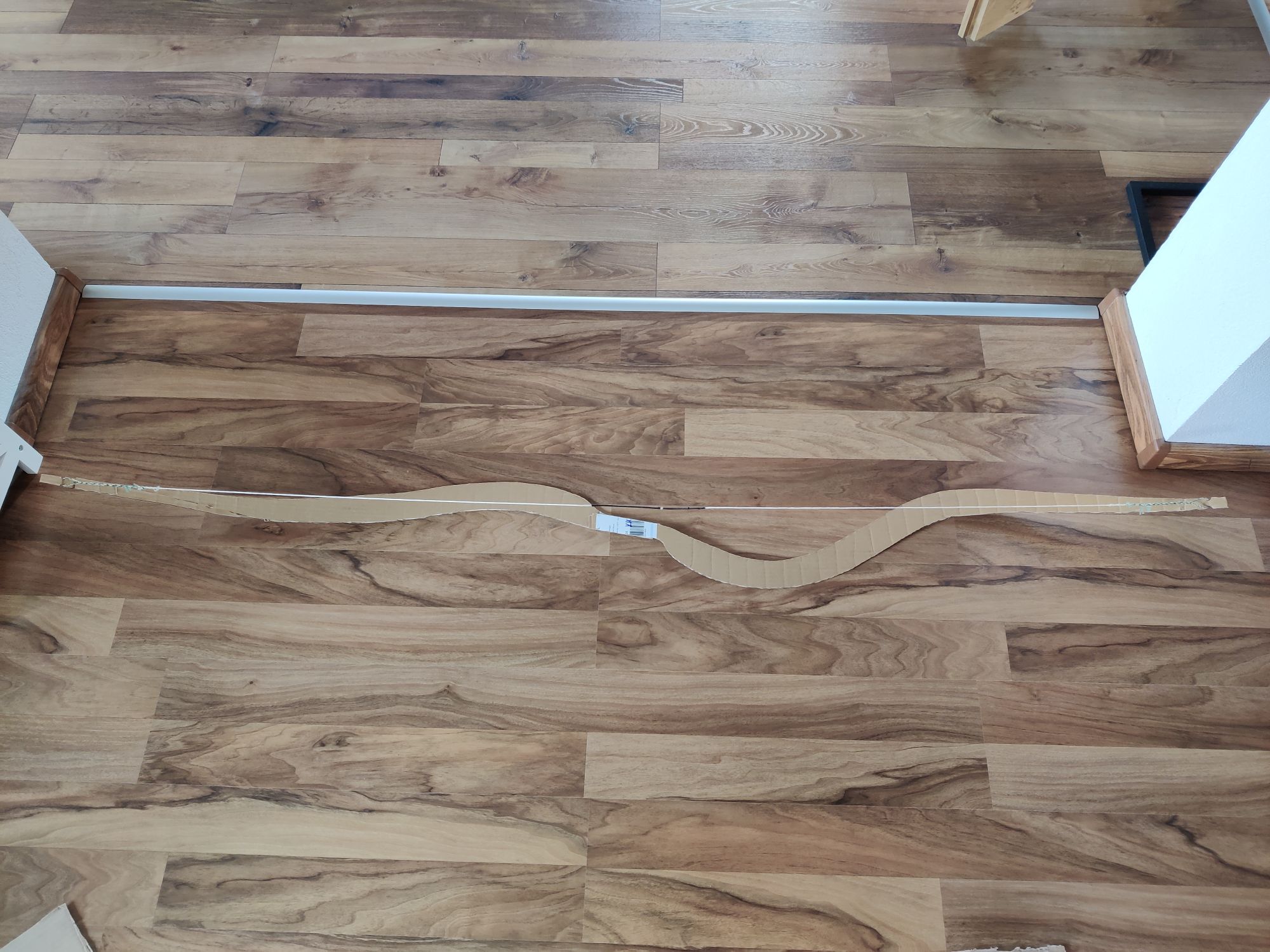 Lege den Bogen auf einen Karton und zeichne den Bogen ab, dann die Kopie ausschneiden, die Mittellinie anzeichnen und alle 3cm im rechten Winkel dazu eine Linie zeichnen, an diesen Querlinien knickst Du den Karton. Dann wirst Du sehen, wie das äußere Bogendrittel bds. gegengleich wegkippt (torquiert). Damit die Enden gerade bleiben, bräuchte es eine zweite gegengleiche Seitverbiegung am oberen und unteren WA. Daher musst Du zuerst die äußeren Wurfarmenden beim Tillern biegen lassen und dort wo die Schlange die Wurfarmenden wegkippen läßt, darf fast keine Biegung sein. Sieh Dir das an Deinem Kartonmodell genau an. Darum muss der Griffbereich mitbiegen und der Bogen lang sein. Der Schlangenbereich darf kaum biegen! Die Stellen die Biegen dürfen, sagt Dir Dein Kartonmodell!