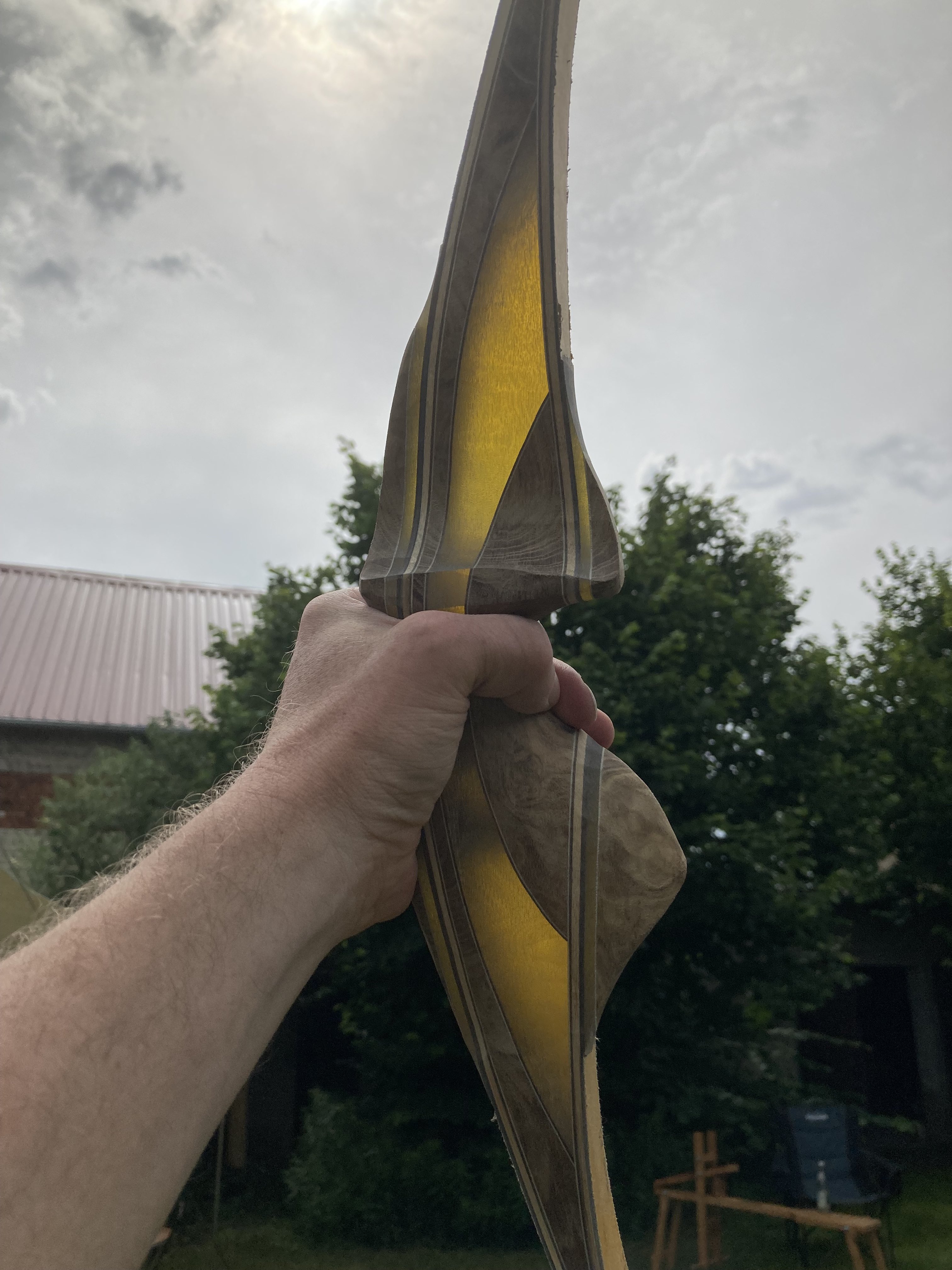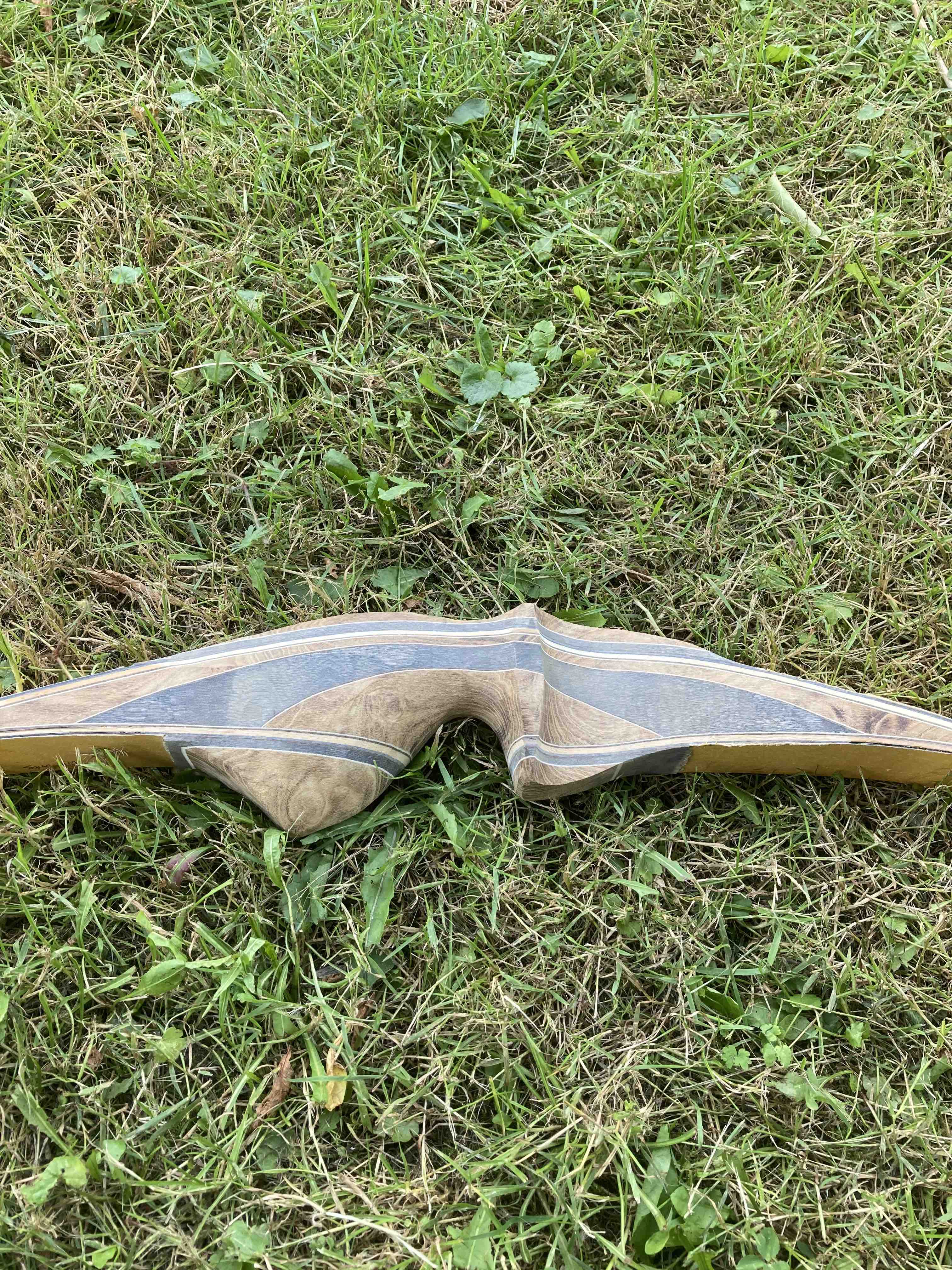 Der Bogen hat aktuell 32# @ 28", wenn ich mit schleifen fertig bin wird er wohl auf auf 30-31 rauskommen und ist damit für mich gut zu schießen. Ein Auszugsbild hab ich...