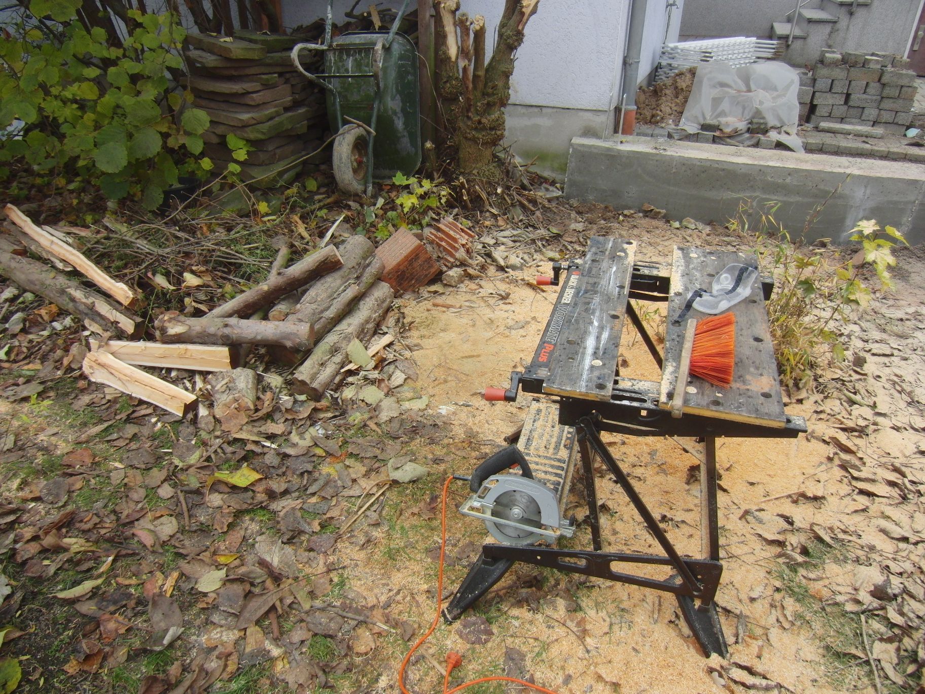 der Arbeitsplatz nach der Arbeit mit der Kreissäge ^^ mindestens ein Bogen liegt hier pulverisiert :D