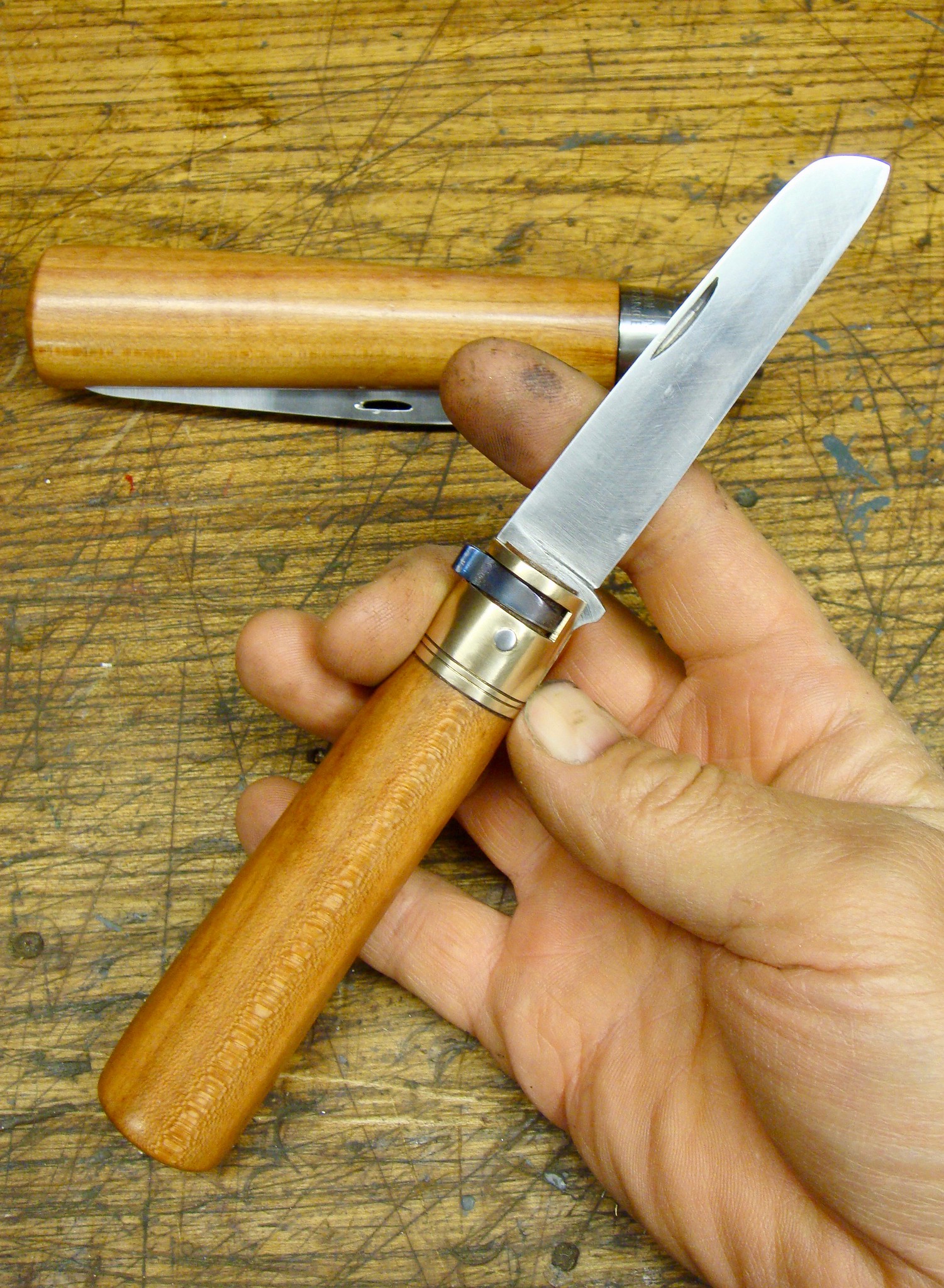 Opinel Umbau ist klar, denke ich... Metallteile komplett original Opinel, ich hab nur den Buchengriff durch Zwetschge ersetzt.