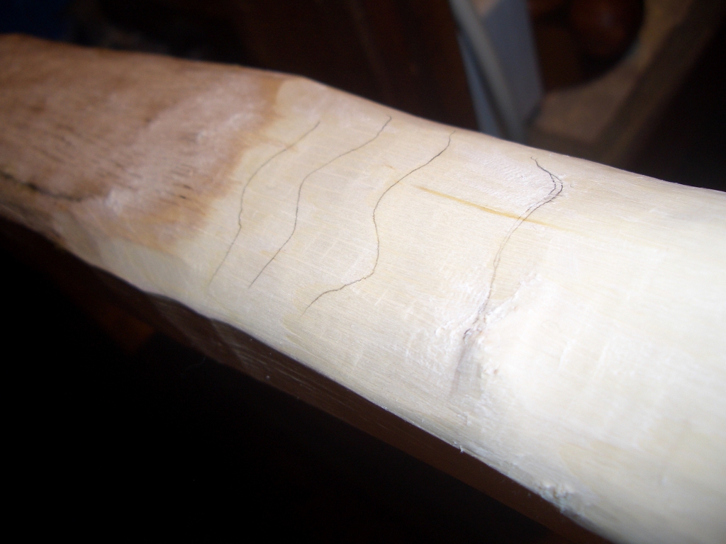 Bei den "Saplings" hat man es oft mit krummen, astigen oder auch zu schmalen Staves zu tun. Da ist es oft besser, zwei gute Billets im Griff zusammenzufügen und so aus zwei minderwertigen Stecken einen guten zu machen. ;)