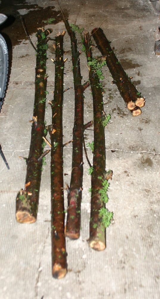 Zwei der Stücke sind ca. 1,80 m lang und da finde ich auch eine Linie ohne Äste. Die beiden Anderen sind kürzer und etwas astiger. Der Kurze geht vielleicht für Billets. Mal schauen.