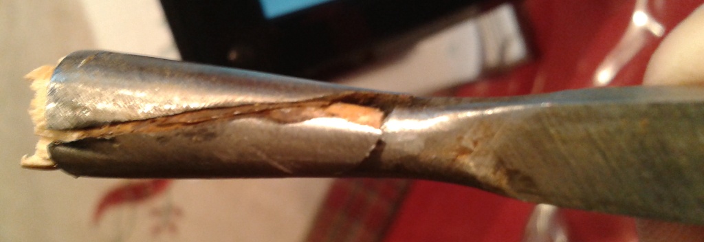 Als der Schaft die Tülle dann hinten aufgedrückt hat, ist da die Spannung zu groß geworden, deswegen der Bruch / Riss...