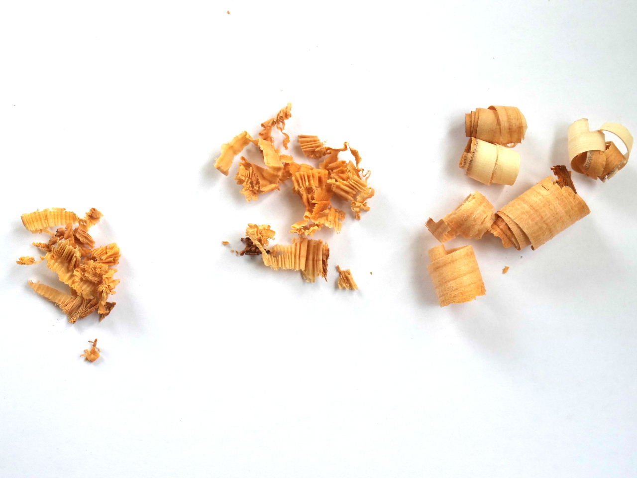 Der Schweifhobel hat den besten Spanabtrag (Bild oben rechts). Der schafft ordentlich was weg. Dafür schneidet die feine Klinge gern mal in die Faser und rubbelt, z.B. bei gegenläufiger Faser oder an Knubbeln und Astlöchern.