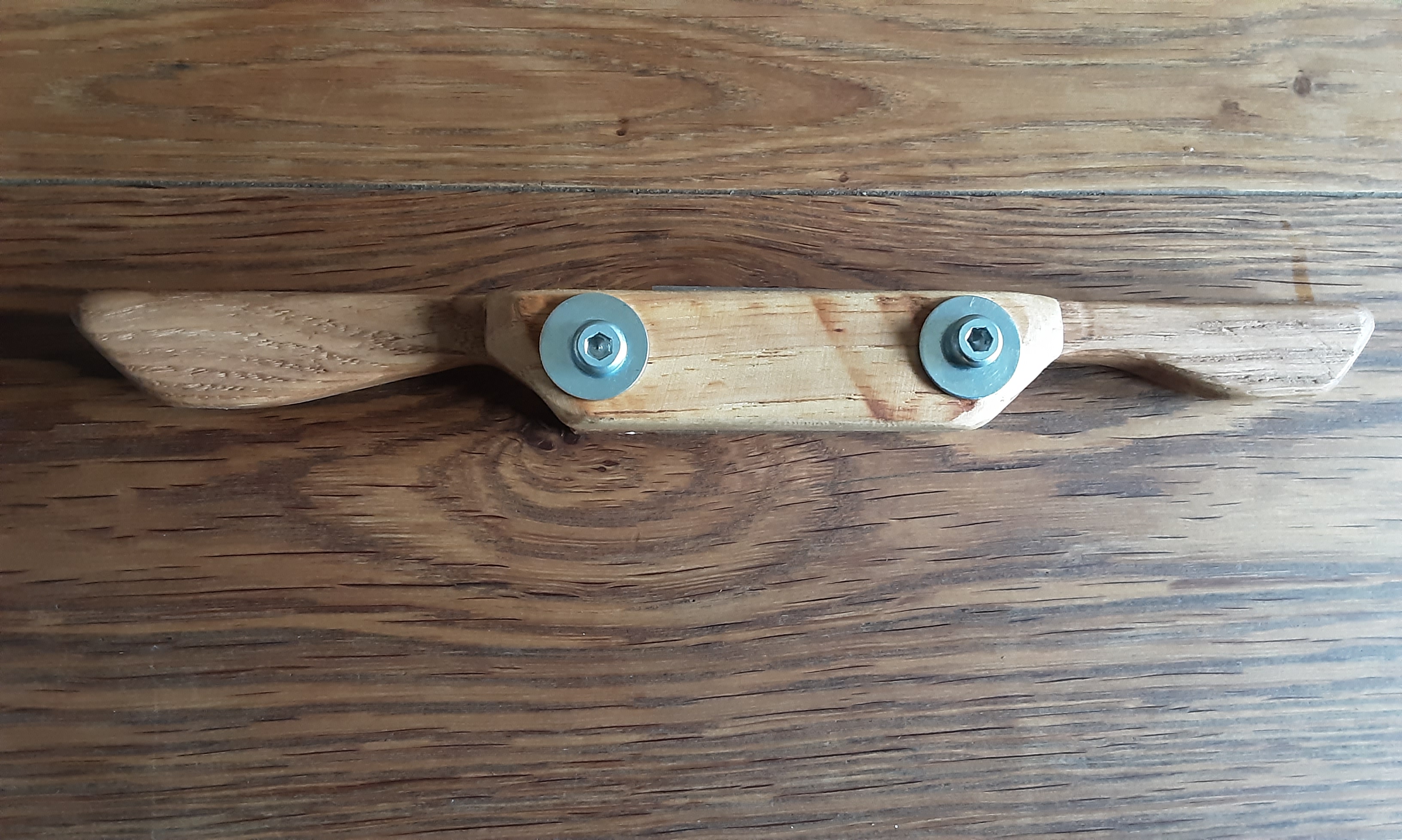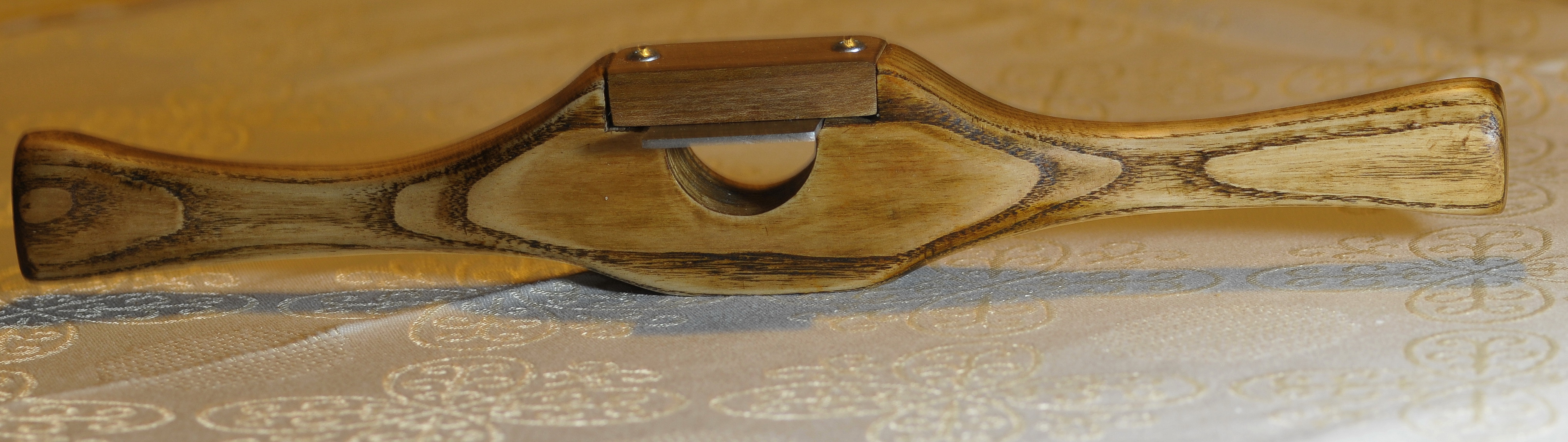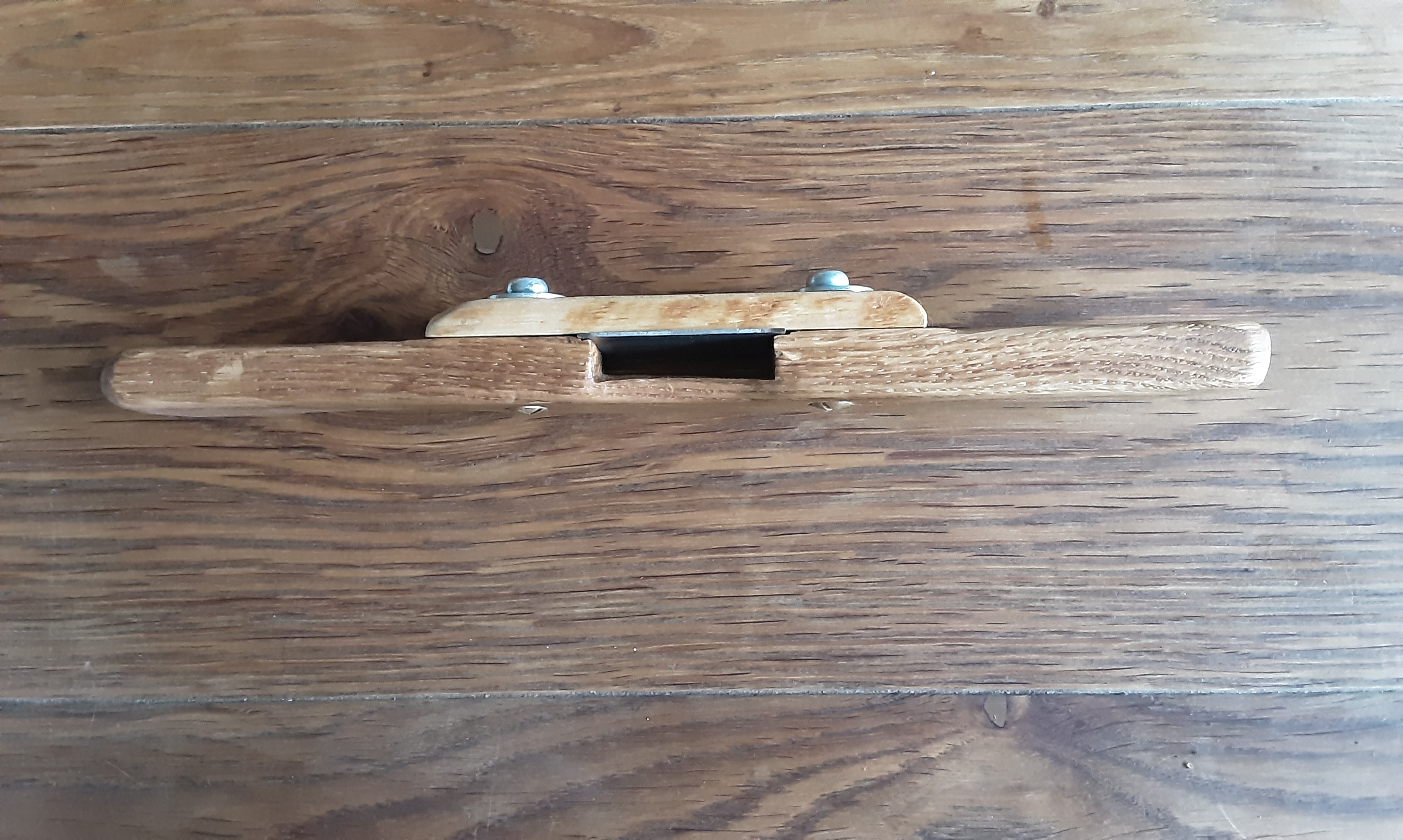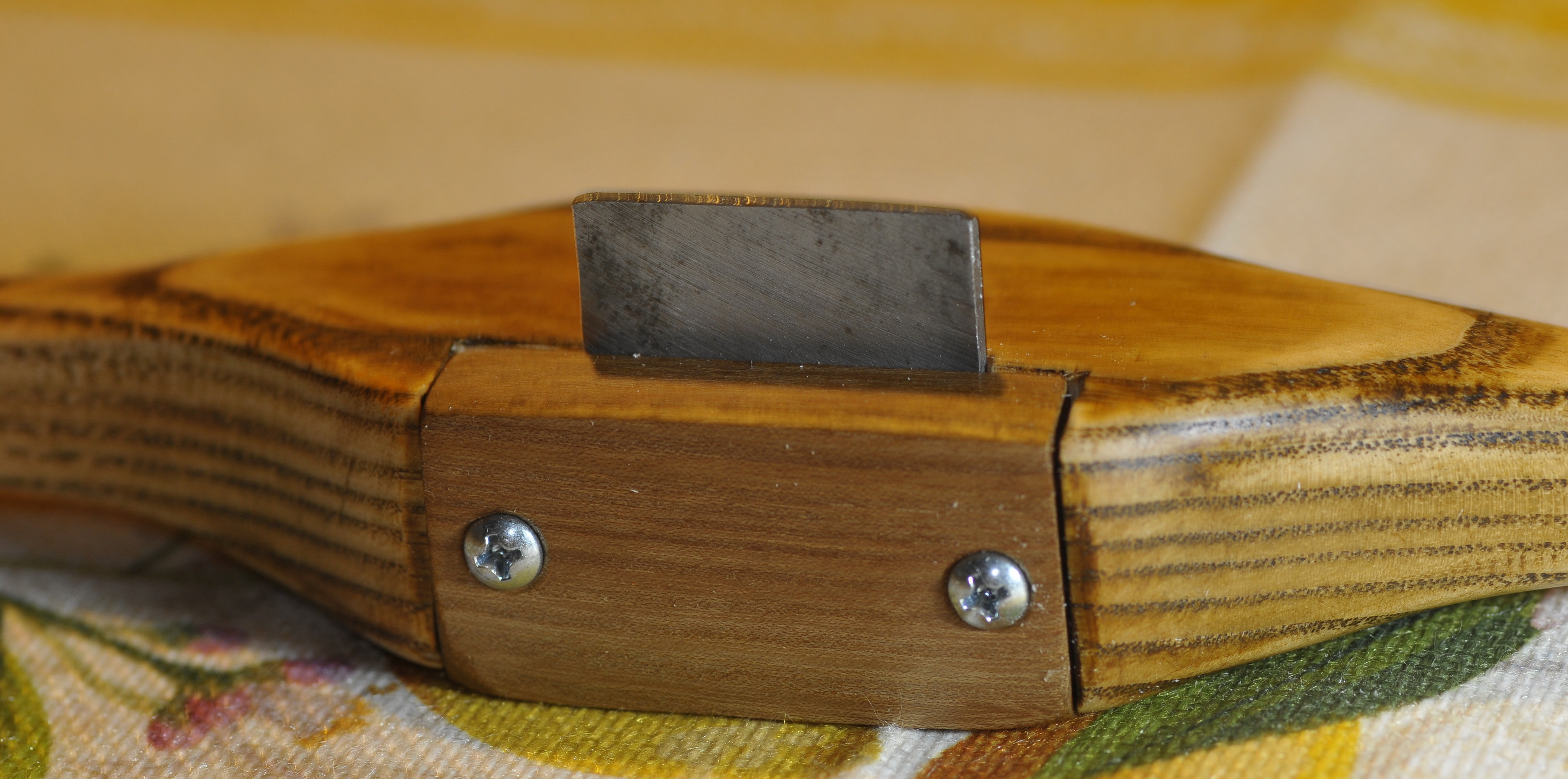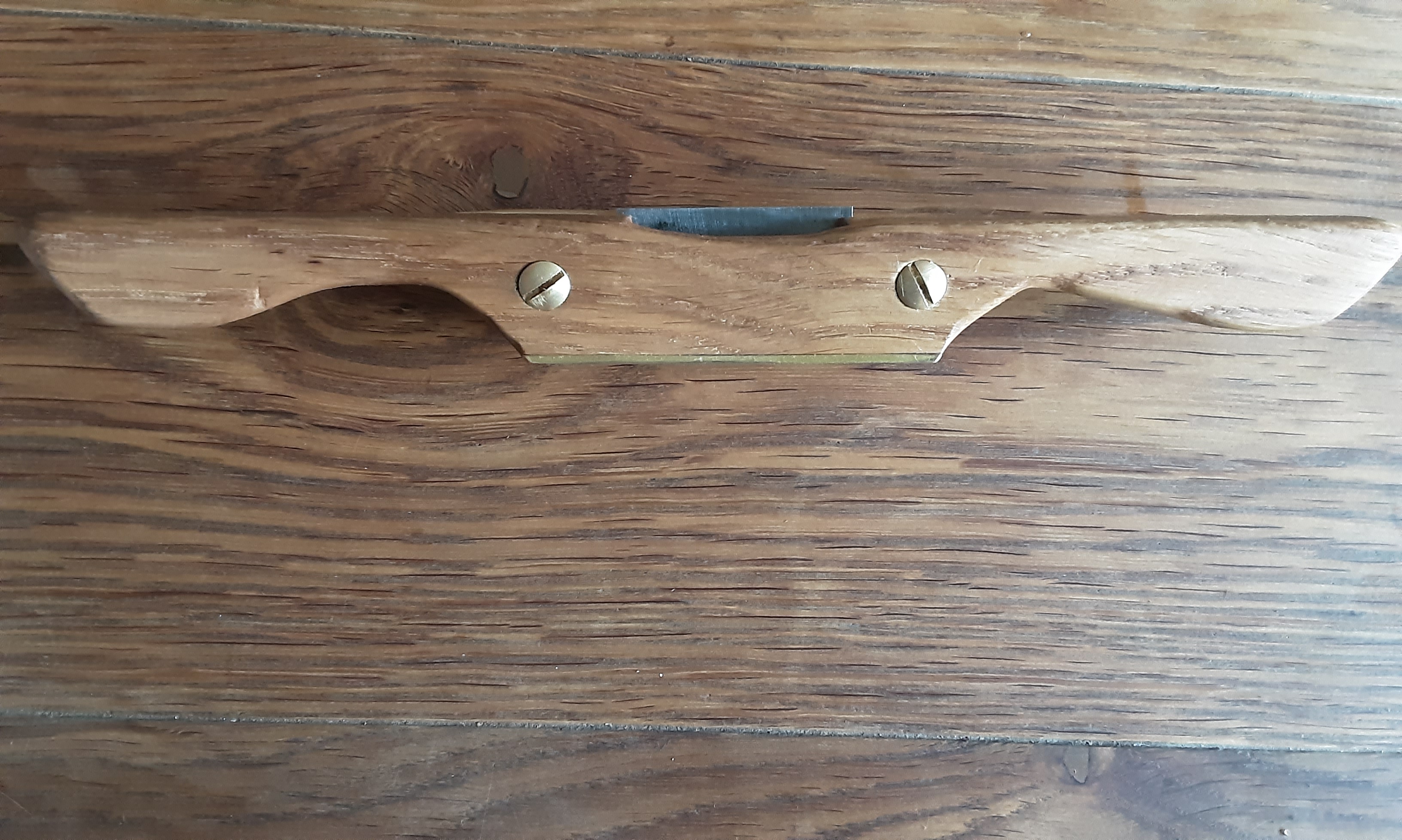 Ich hab es nun schnell nachgebaut, Holz aus einer Terrassendiele und die Klinge von einem billigen Einhandhobel.
