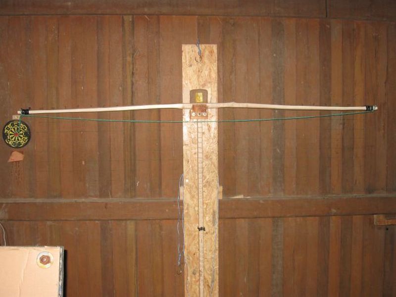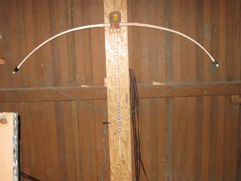 Ich traue mich nicht den Bogen weiter zu spannen, da ich vermeiden möchte, das er jetzt schon zu viel "Set" bekommt. Wenn es unter 5 cm bleibt, wäre es für mich ausreichend. Der Bogen wiegt bei einer Länge von NzN 156 cm zur Zeit ca. 380g.
