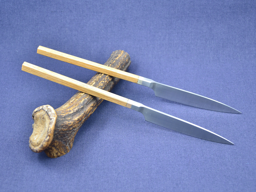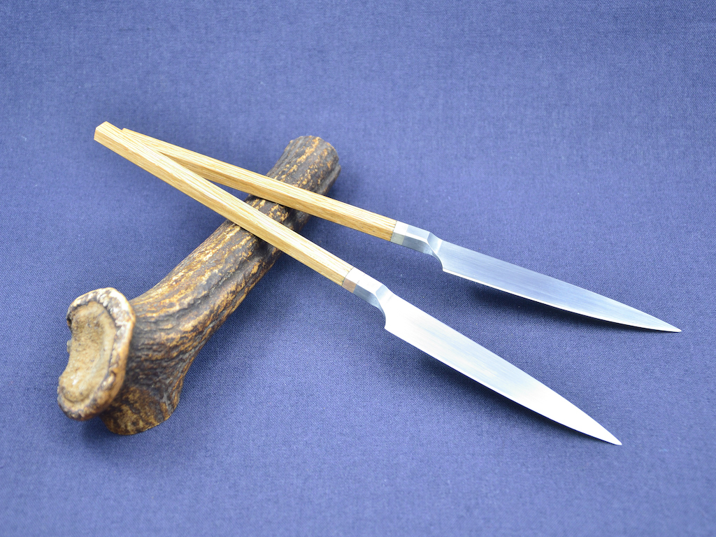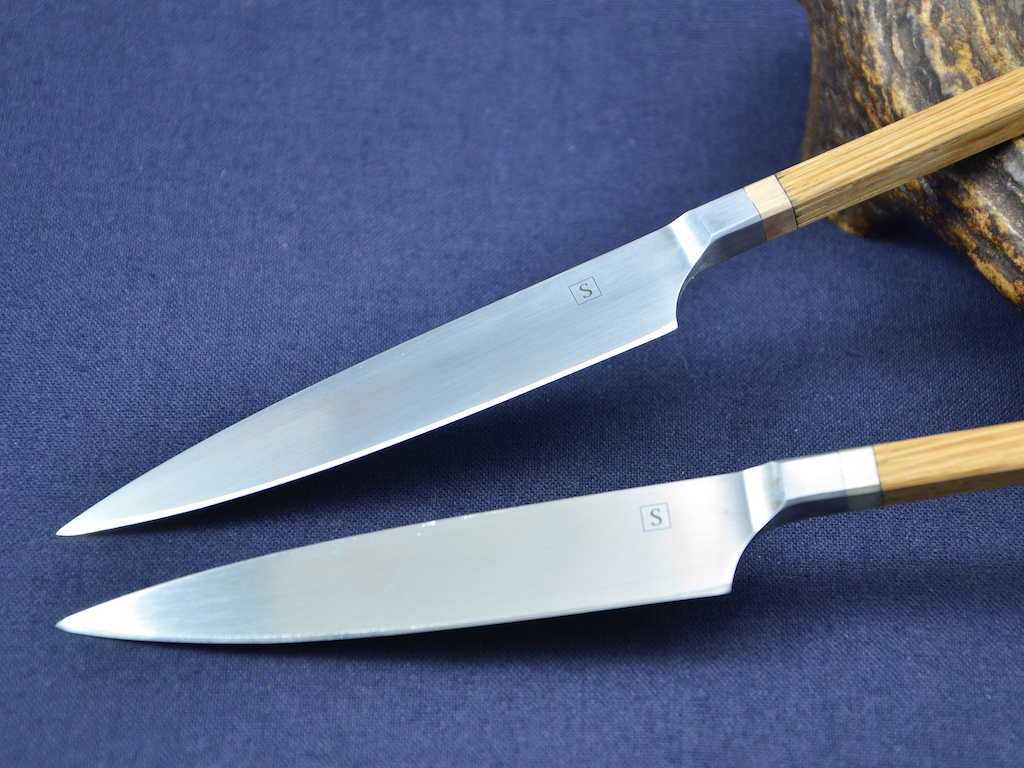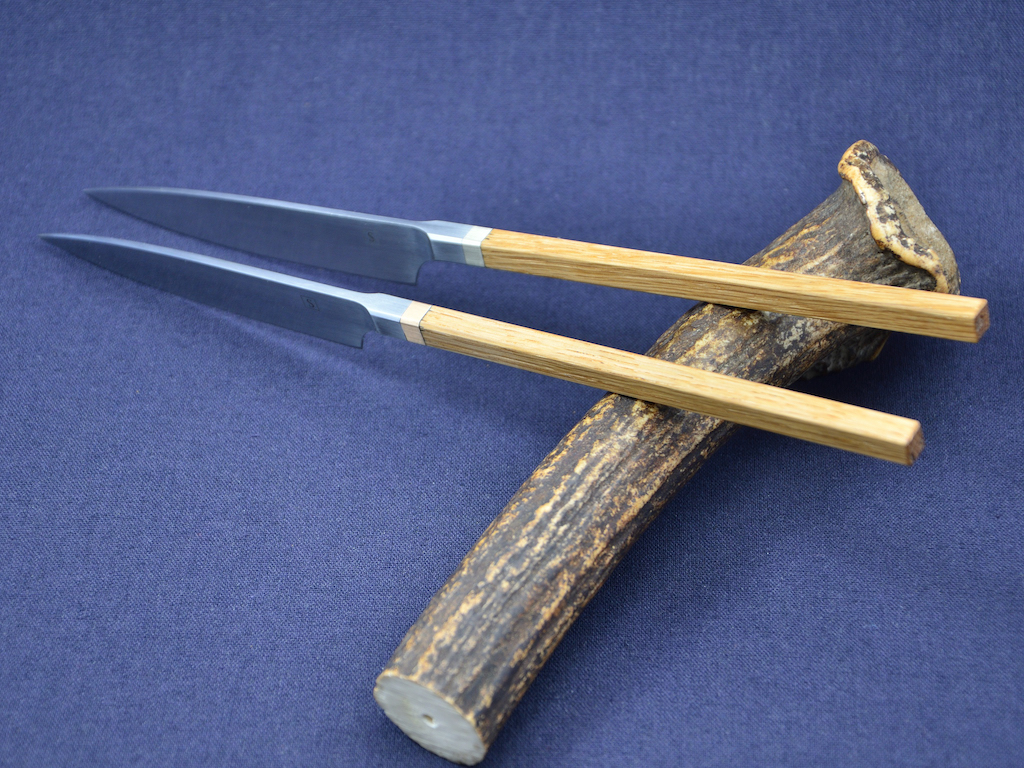 ich stelle hier zwei Prototypen vor die ich heute fertig gemacht habe, Steakmesser SB1 mit Eiche