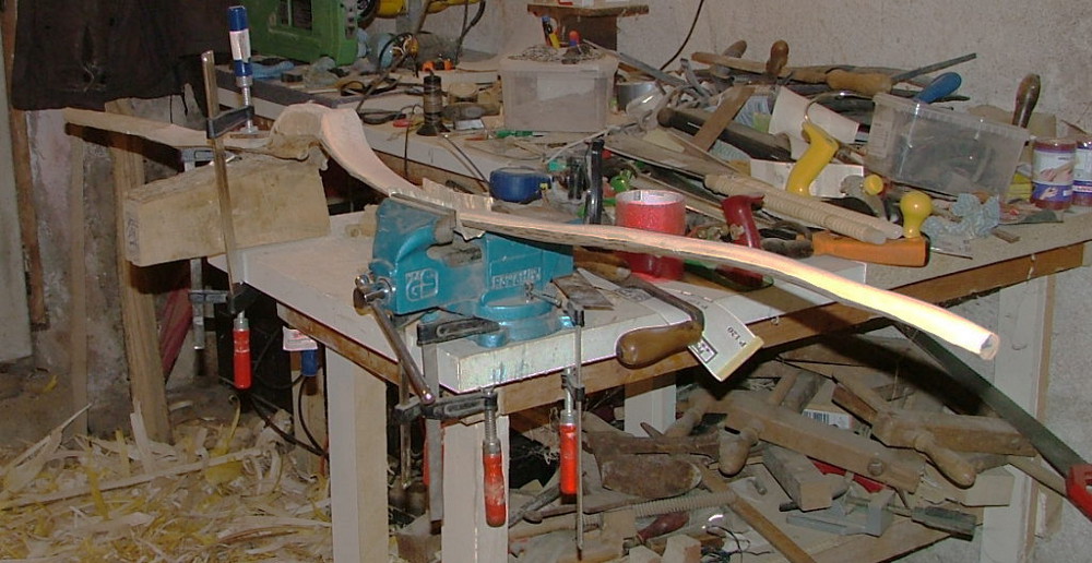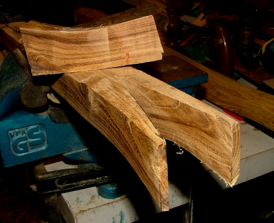 Falls das nicht geht, kann man Eibe gut dämpfen und biegen. Dazu unbedingt mit Latten ein Richtwerkzeug herstellen, an dem man gut festzwingen kann.