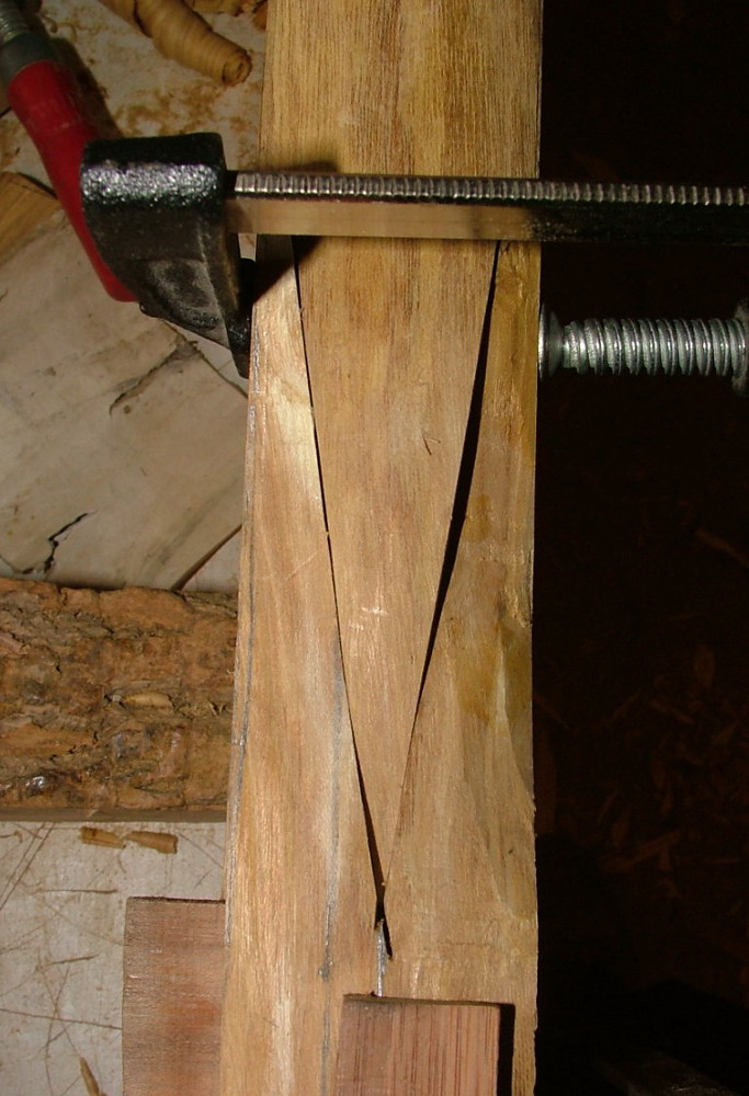 nach dem Abrichten der Billets hab ich diese dann gegeneinander zum Trocknen verspannt bis sie gerade waren und das gab gestern einen ziemlich spannenden Moment beim Abnehmen der Zwingen.