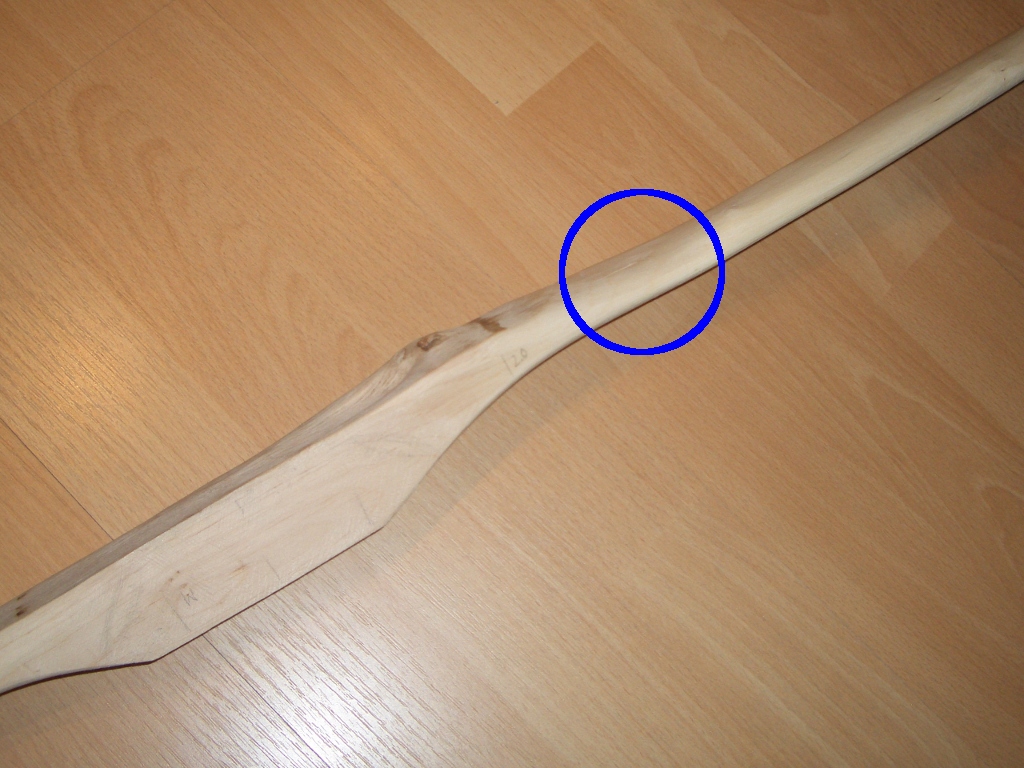 Falls die 30 lb nicht erreicht werden, kann man zuerst versuchen, den Griffbereich verlängert zu stärken. Ein Aufbauholz am Griff ist erlaubt.